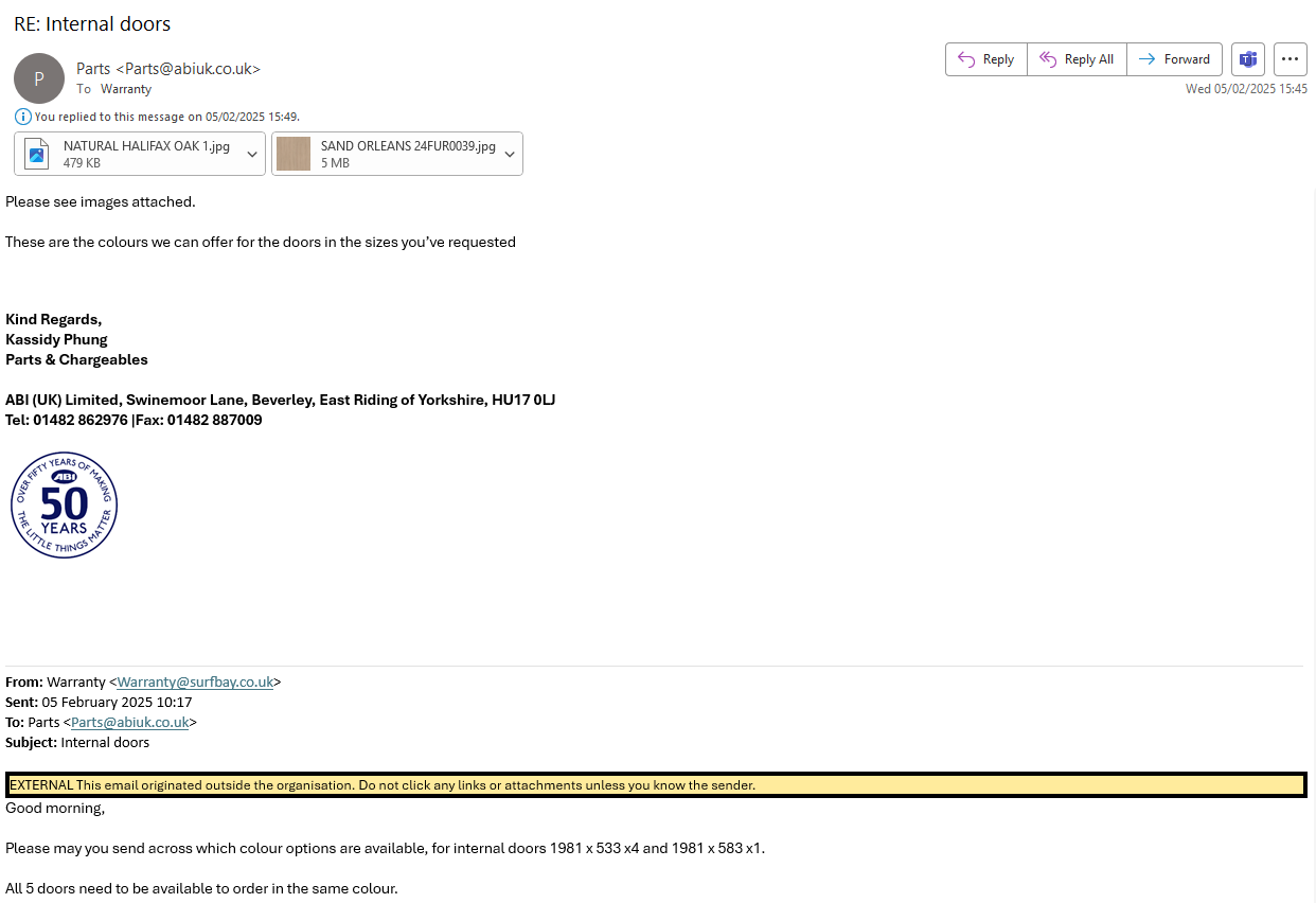 All 5 are being ordered in the 'sand orleans' colour, which is the same as the 1981 x 583 door that has been ordered on the above gw case.