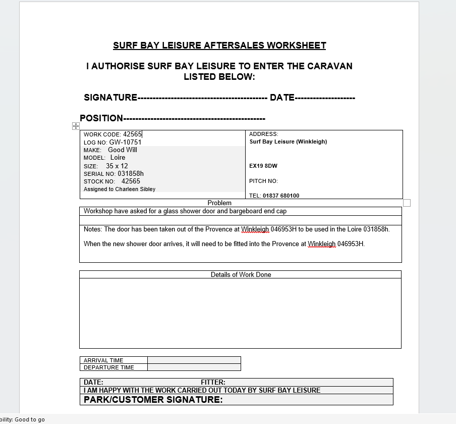 When the new shower door arrives, it will need to be fitted into the Provence at Winkleigh 046953H.