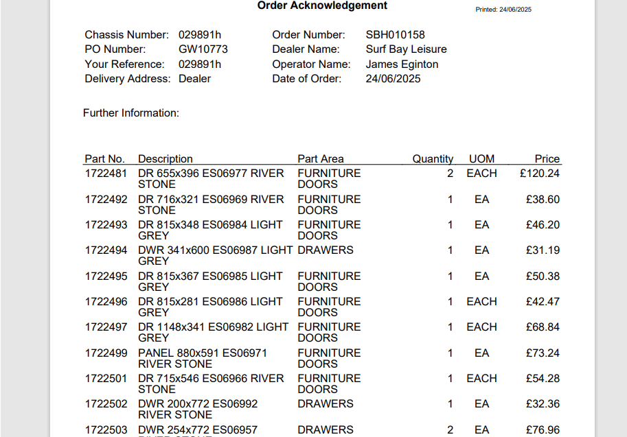 Parts ordered