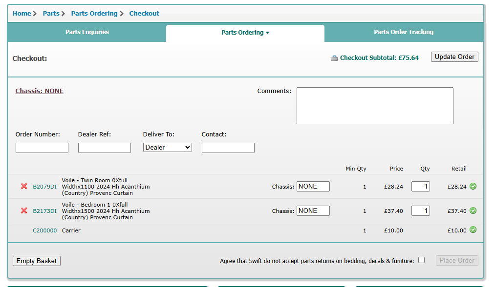Have submitted to swift with parts enquiry.