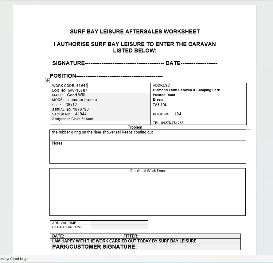 | Status | Parts Recieved [ 10003 ] | Worksheet Issued [ 10004 ] |