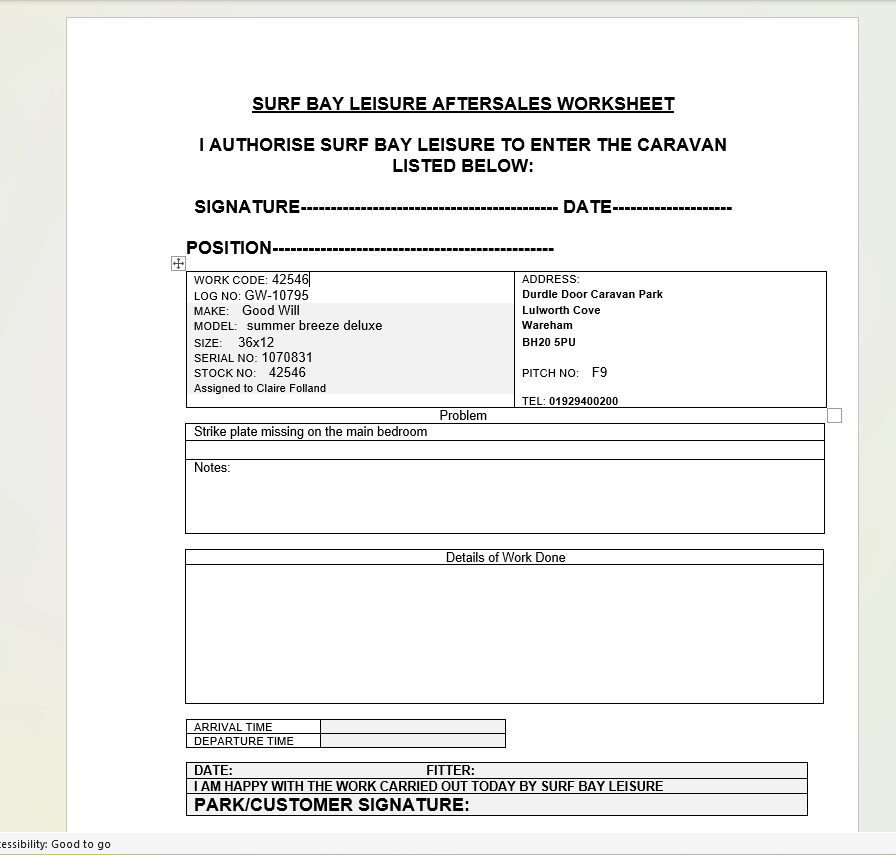 | Status | Parts Recieved [ 10003 ] | Worksheet Issued [ 10004 ] |