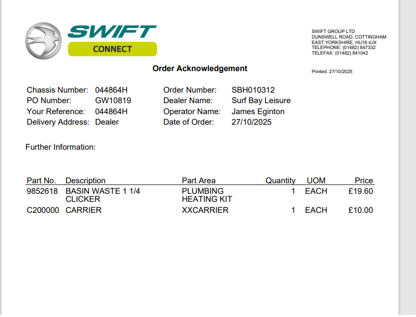 James Eginton added a comment - Part received, placed on rack and worksheet issued.