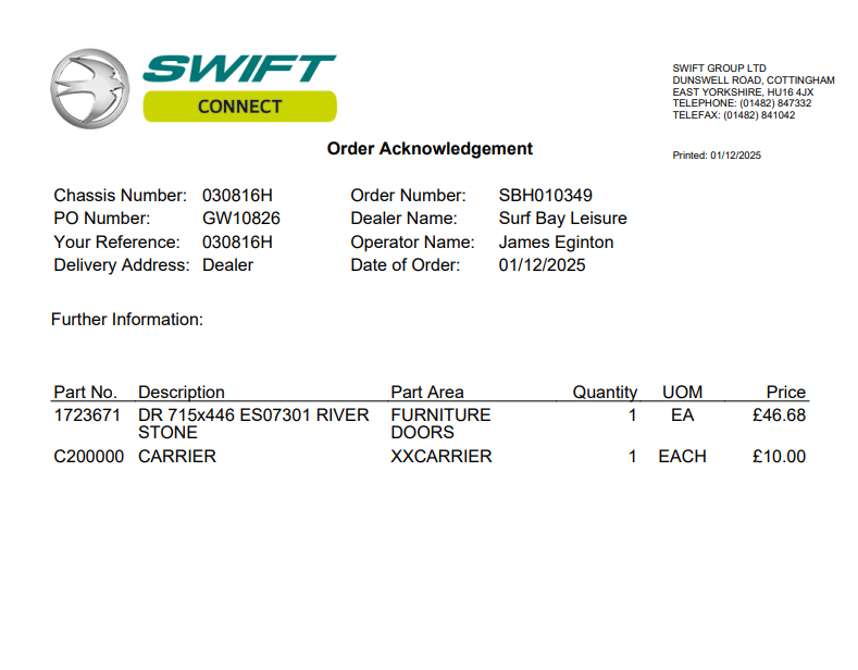 James Eginton added a comment - Door is damaged, have requested a replacement from Swift.