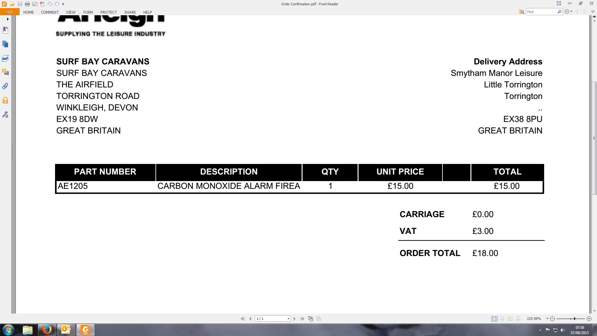 | Attachment | Order confirmation .jpg [ 99067 ] |