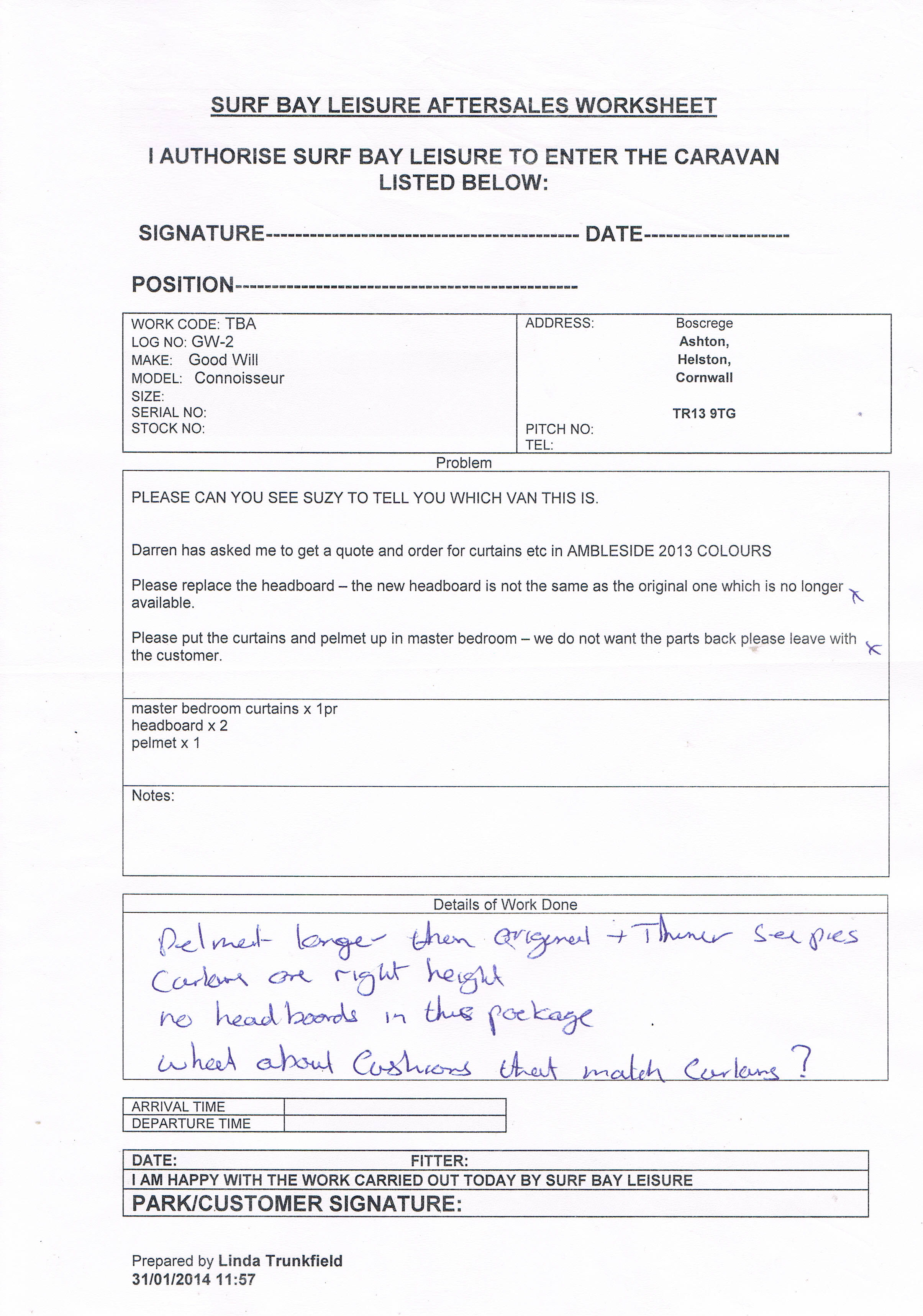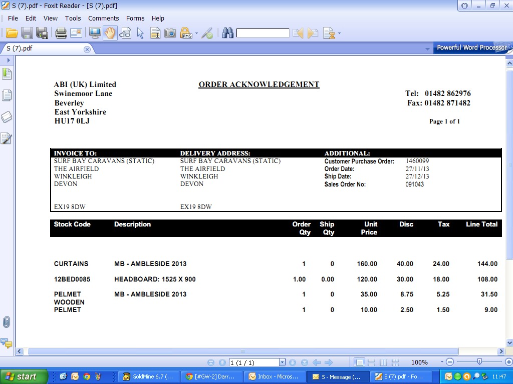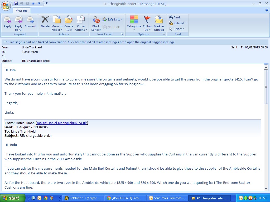 Dan has sent the re-vised quote for the curtains pelmet and headboard. I have now placed the parts on order.