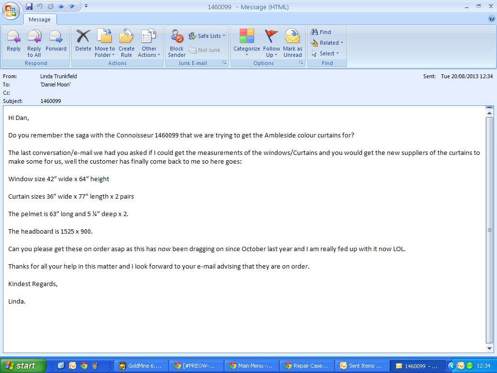 Darren has asked me to get a quote and order for curtains etc in AMBLESIDE 2013 COLOURS