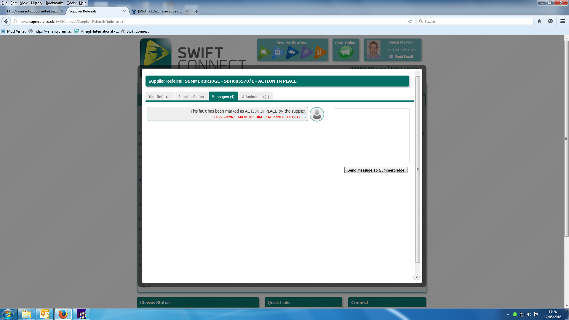 Debbie Bartlett (Inactive) added a comment - Swift portal has advised action in place. screen shot attached.