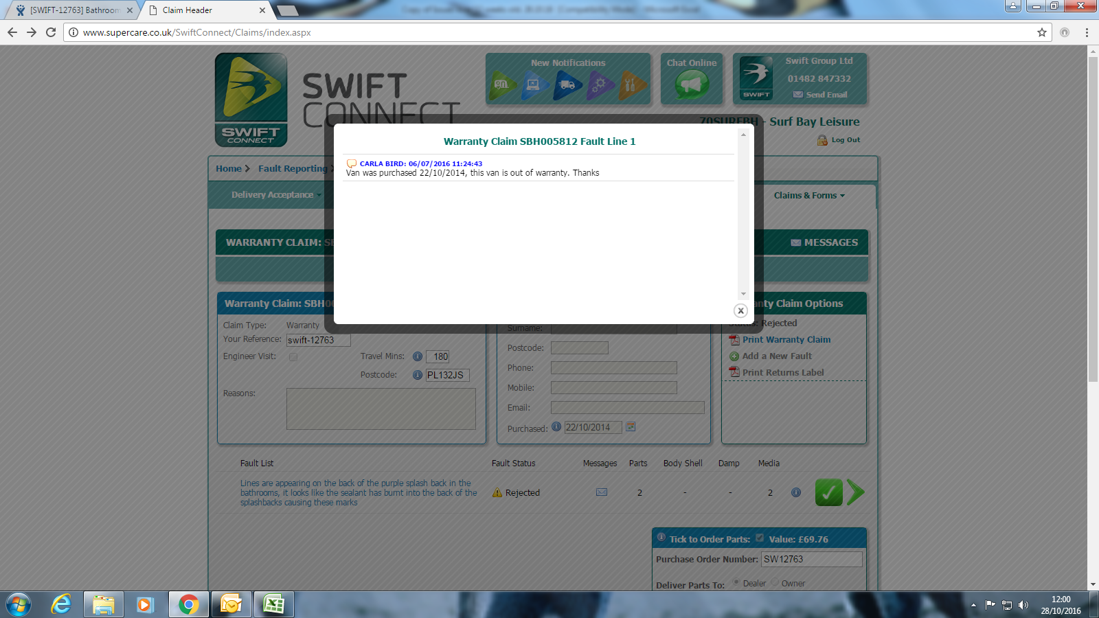 Isabel Smith (Inactive) added a comment - This again has been rejected because it is out of warranty I am changing this to G/W. See screenshot attached.