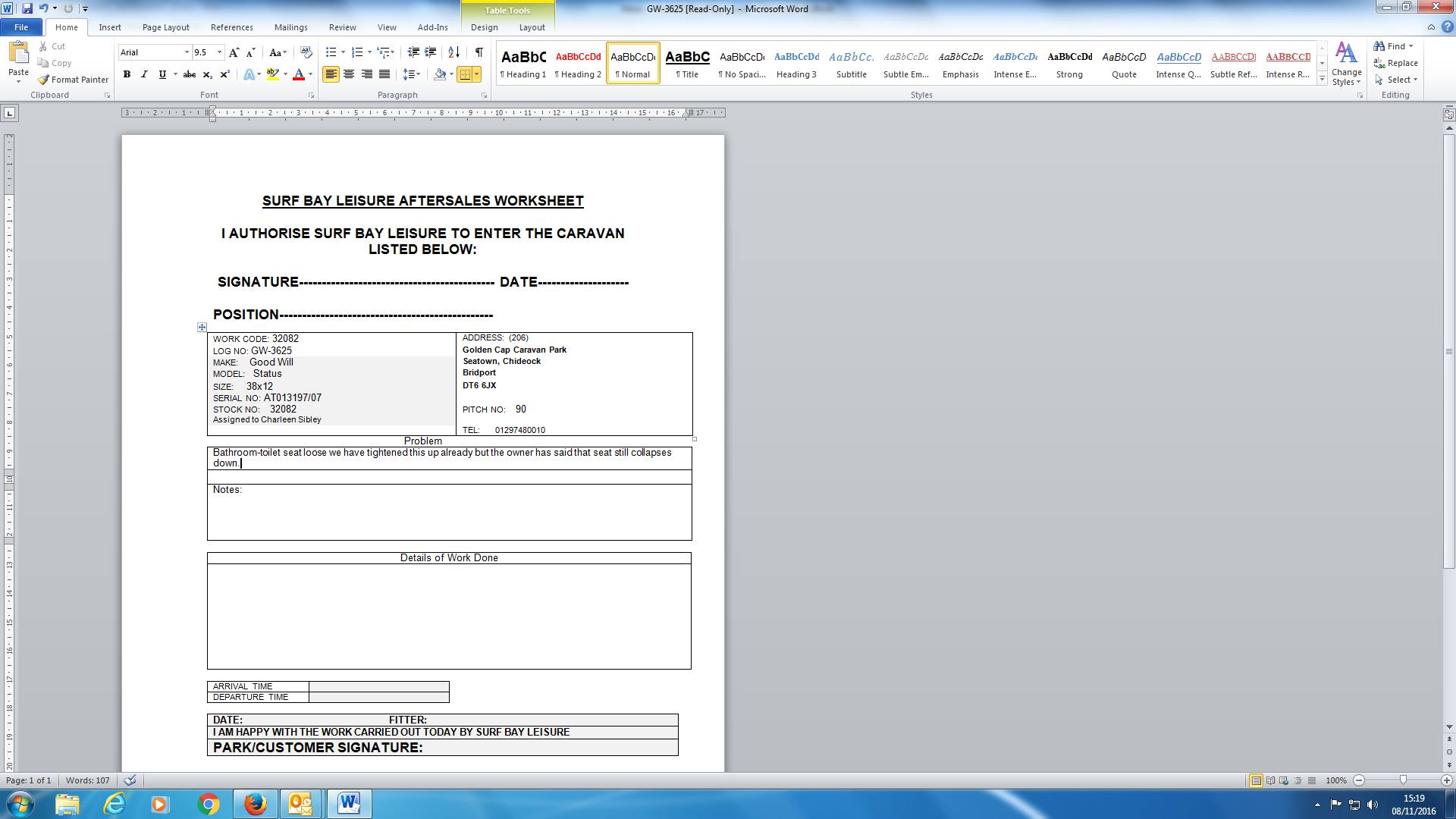 Charleen Sibley added a comment - Updated the park 19/11/16 by email