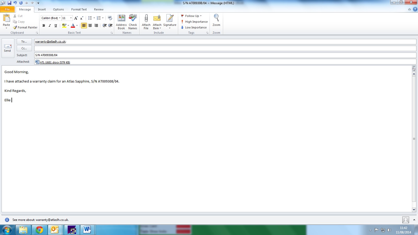Ellie W (Inactive) added a comment - Received invoice from atlas - completed order on sage charged to stock number