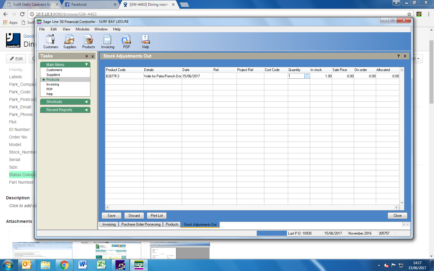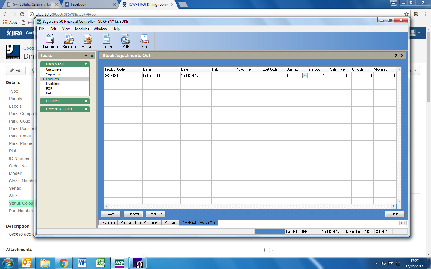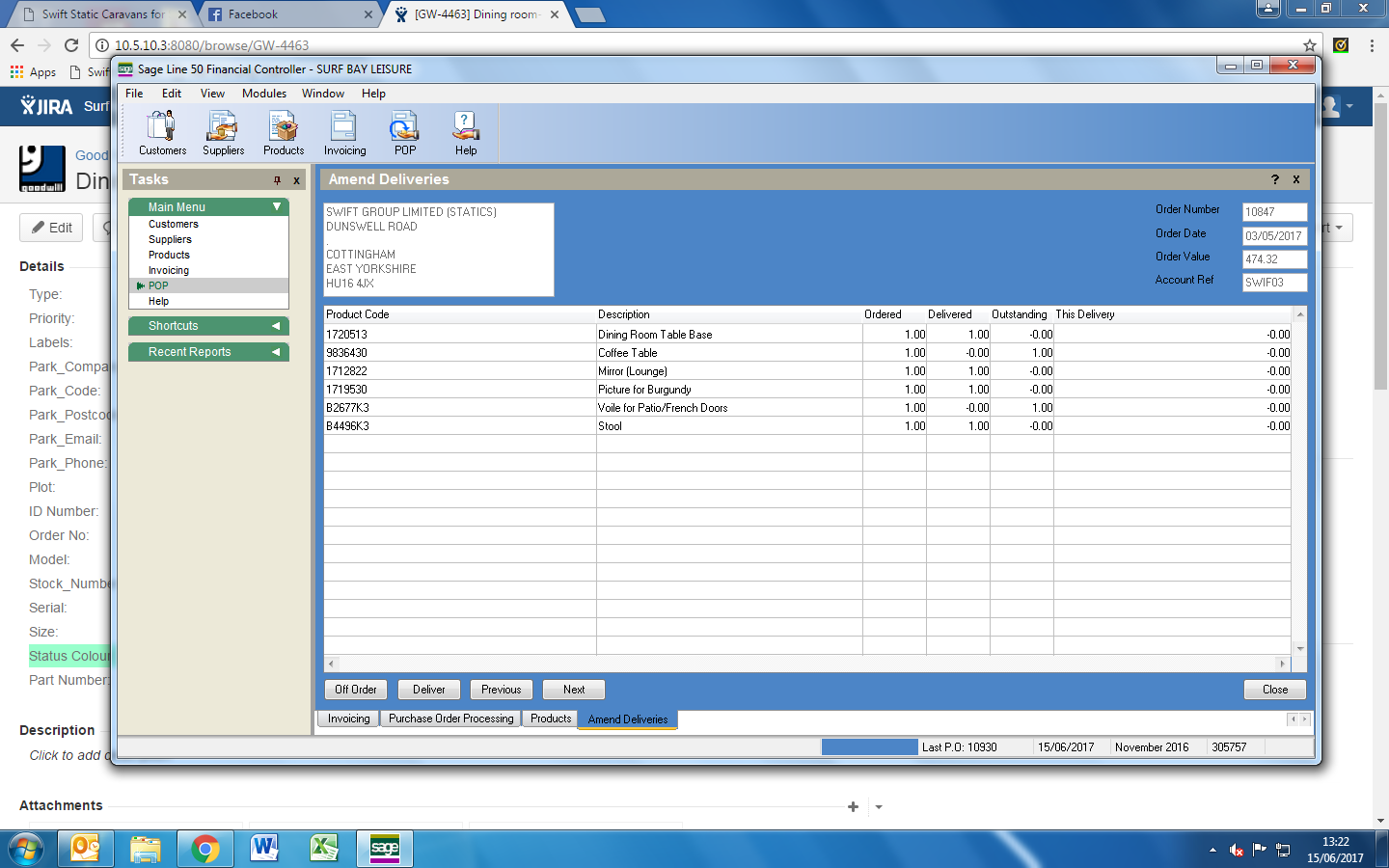 Isabel Smith (Inactive) added a comment - I didn't put the screen shots on this issue. This looks like the way we have to pay for parts after they come into us which is not something that I have ever done before. I have checked with Claire to find out if we have received the replacement table because there has never been a worksheet issued for this claim. According to Swift the part was dispatched on the 22/05/17 so not sure what has happened. Claire is going to speak to Steve and see if we can polish up one that we have got and if not then speak to Swift to find out where the part has gone and if we need to order a new one.