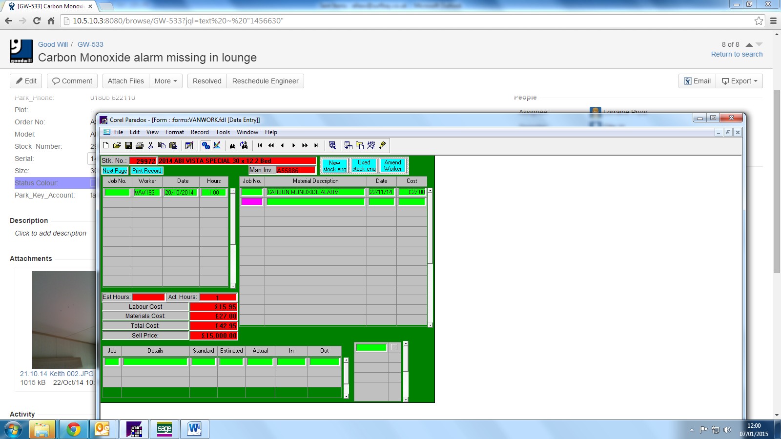 Parts received - issued worksheet for this to be completed - part on devon rack