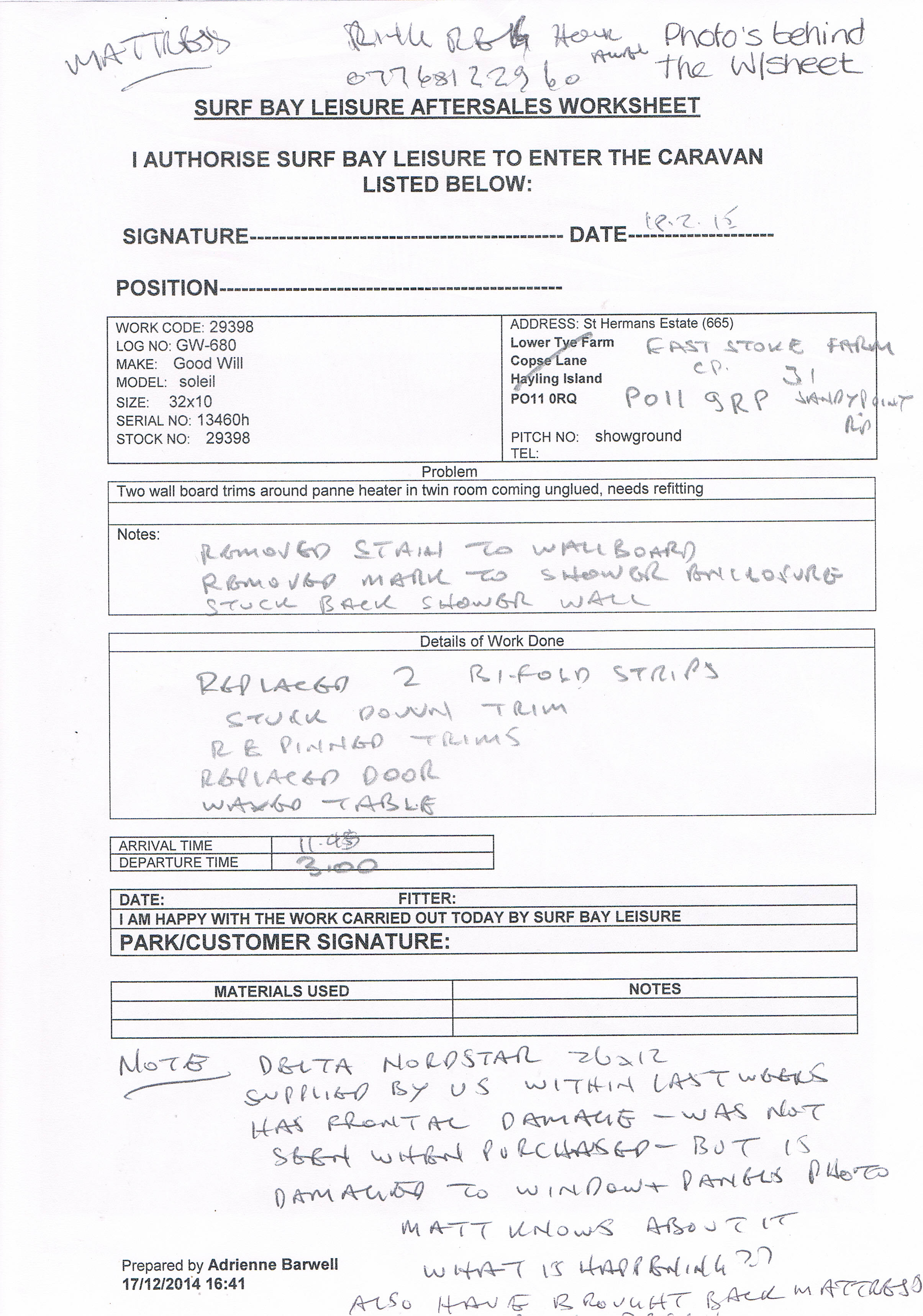 He also said can you ask the engineer to take some kick strip down when they go, he said its the stuff they use on the second hand vans. ( not sure if you want a work sheet issue and just added on to one?