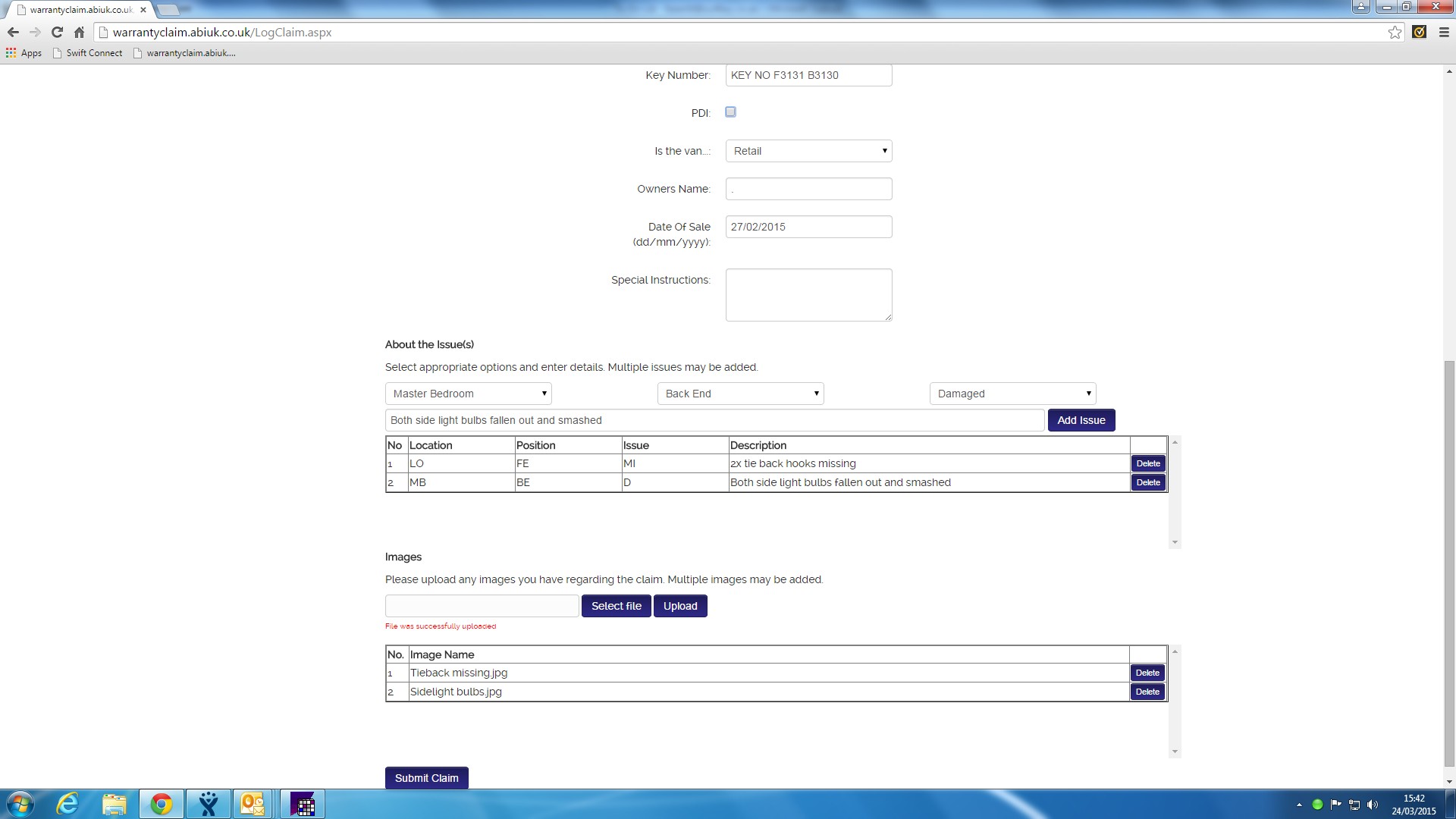 | Summary | CLONE - PDI reports 2 tie back hooks missing in lounge | pdi reports both side light bulbs have fallen out in main bedroom |