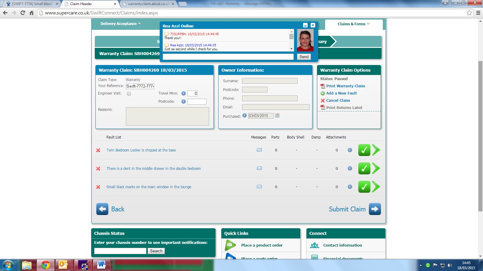 This issue has been rejected by Swift the van was delivered in February.
