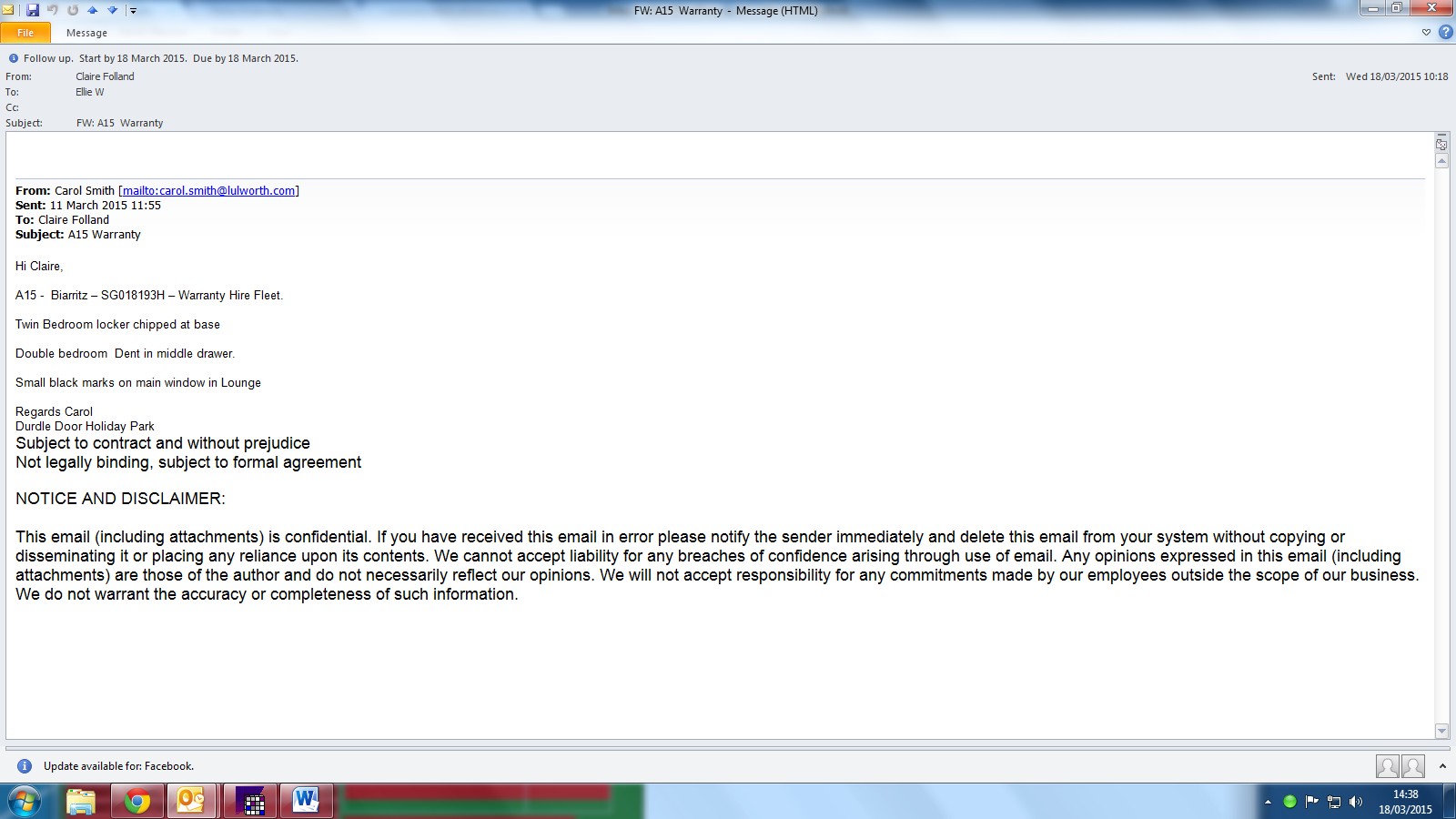 Ellie W (Inactive) added a comment - I have spoken to Preston about this and he has said that he cannot see an issue with this - he asked the receptionist to check this as well and she agreed there was not an issue I will close this issue off for now