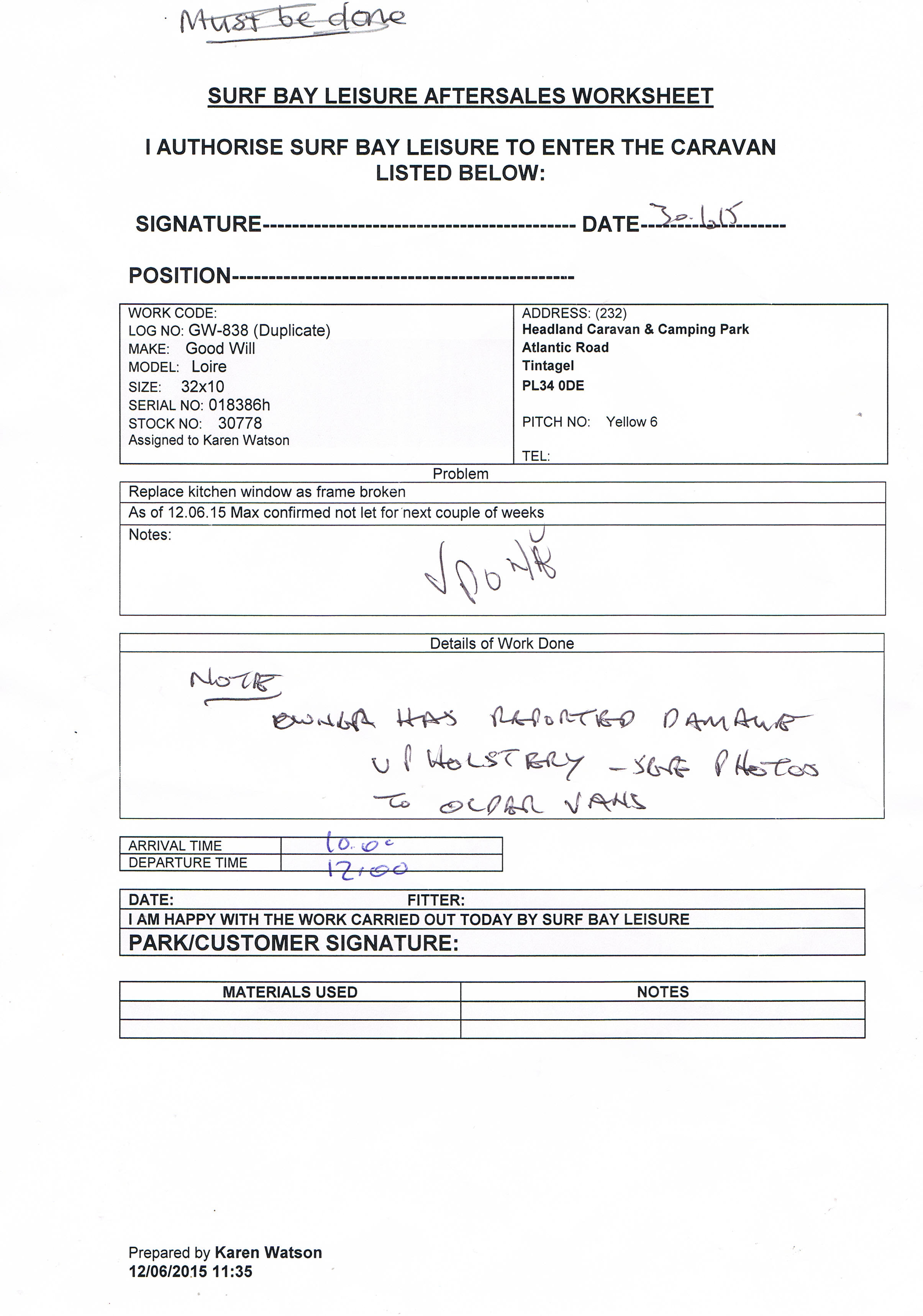 | Description | Engineer assessed that damaged likely to have occurred prior fitment. | Engineer assessed that damaged likely to have occurred prior to fitment. |