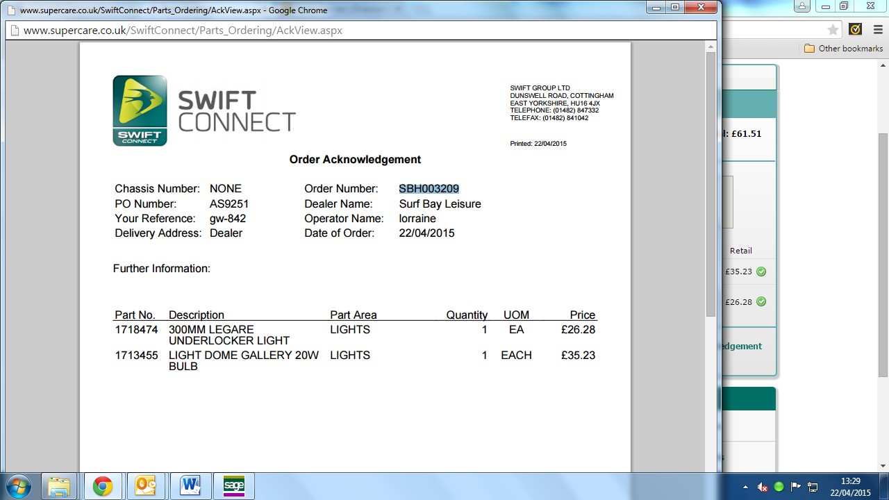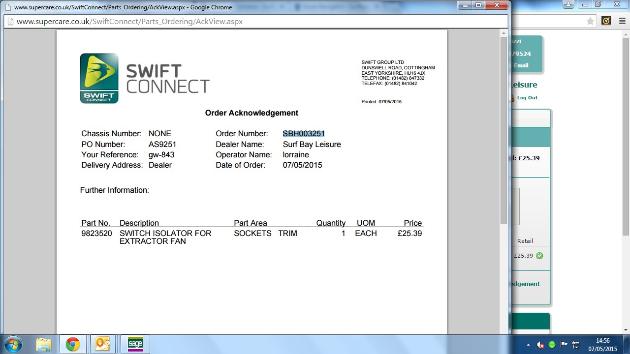 I will order this part today on swift