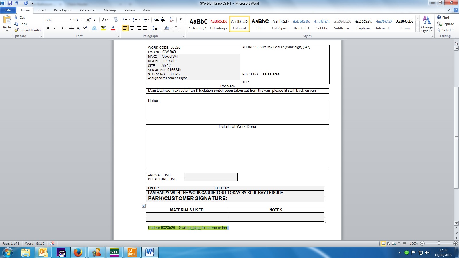 | Status | Parts Recieved [ 10003 ] | Worksheet Issued [ 10004 ] |