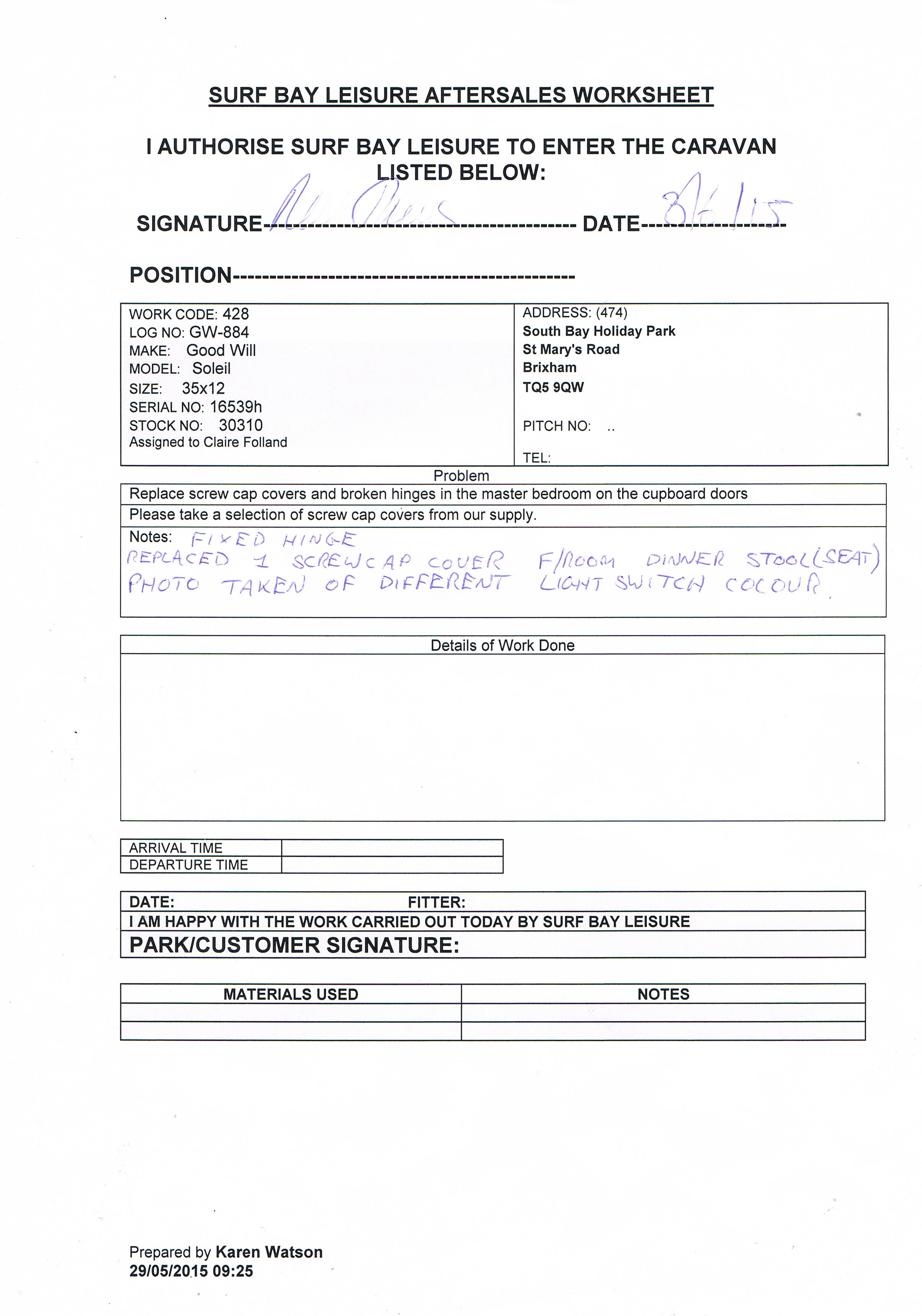 Claire Folland added a comment - Replacement hinges on order
