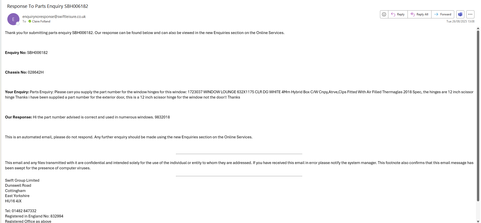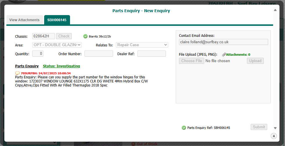 | Status | Quotation accepted [ 10008 ] | Parts ordered [ 3 ] |