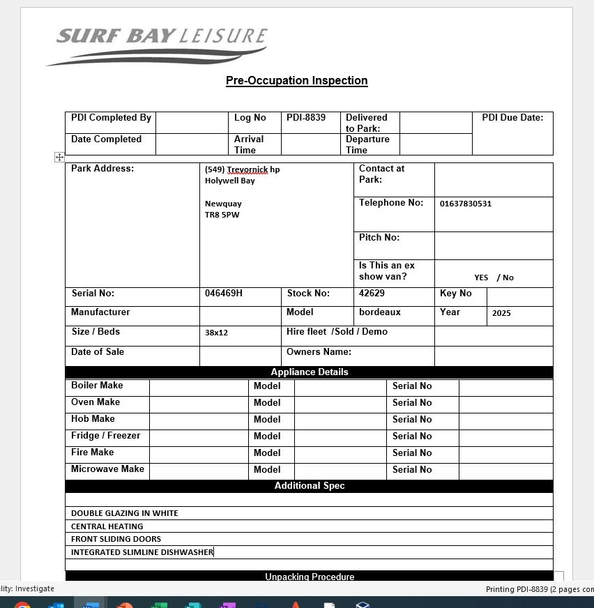 Claire Folland added a comment - pdi complete by Duncan 11-3-25