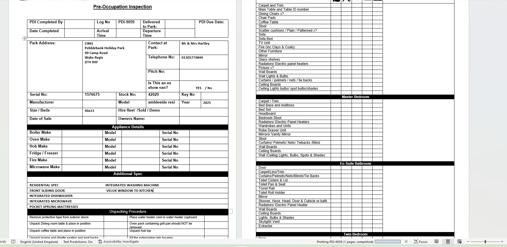 | Summary | pdi to be carried out | pdi to be carried out Mr and Mrs Burdett, the date of sale is 26th October 2025 |