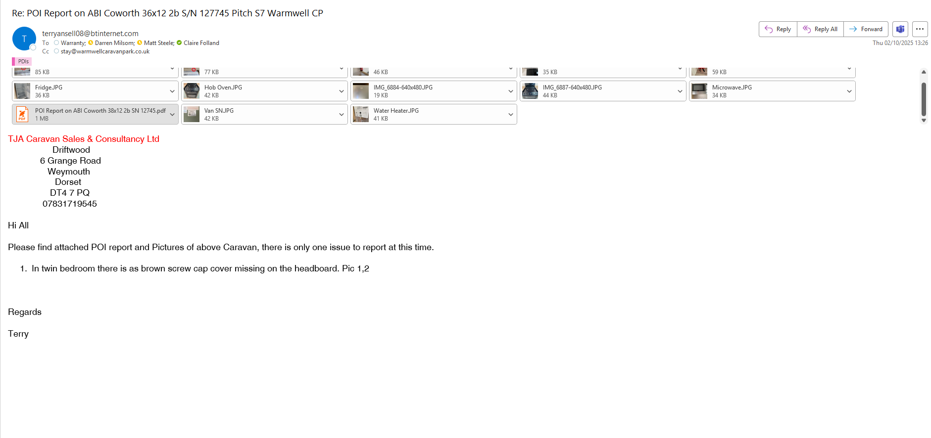 Claire Folland added a comment - pdi complete by Terry 2-10-25