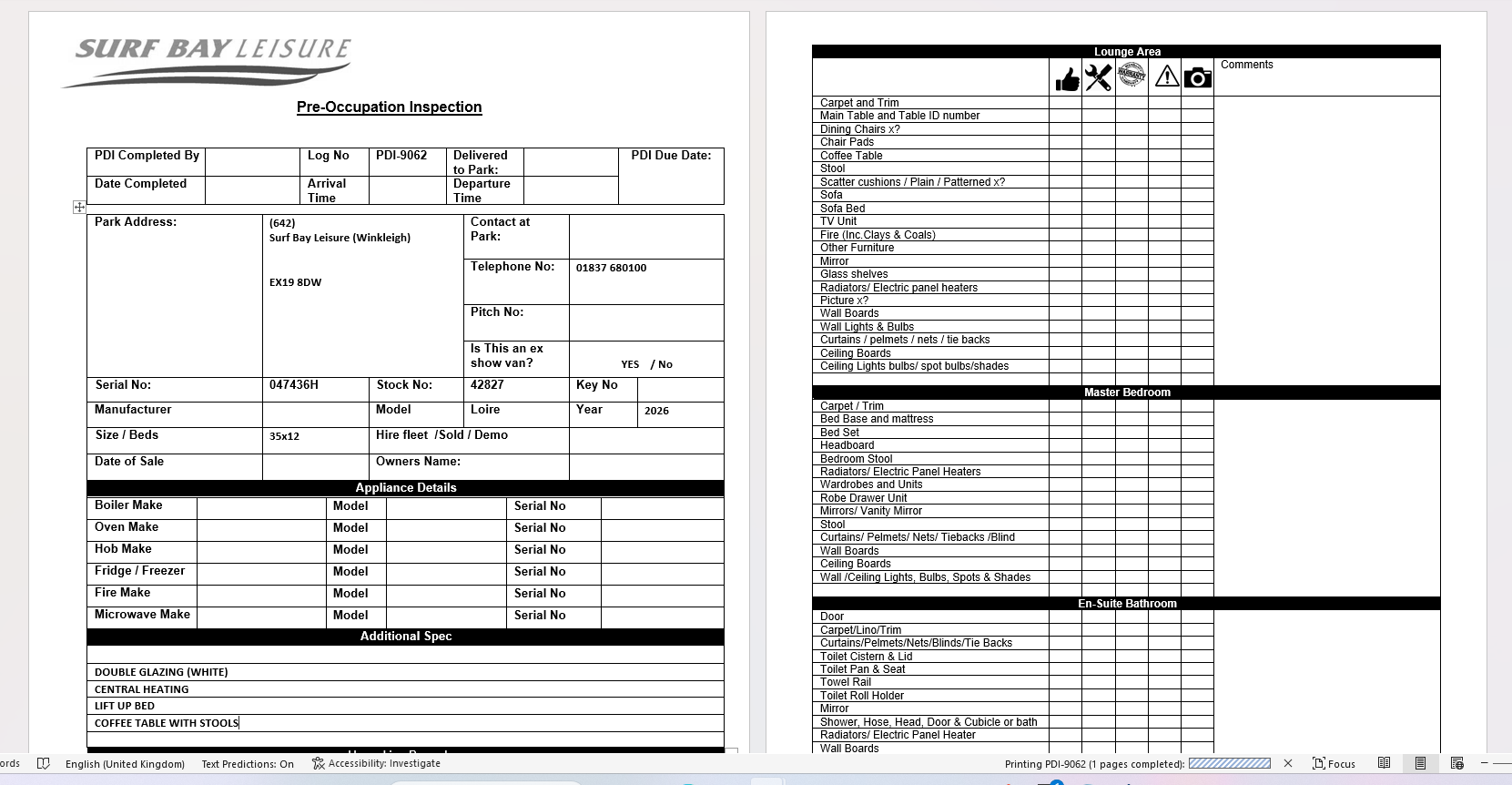 Claire Folland added a comment - pdi complete by Duncan 24-10-25