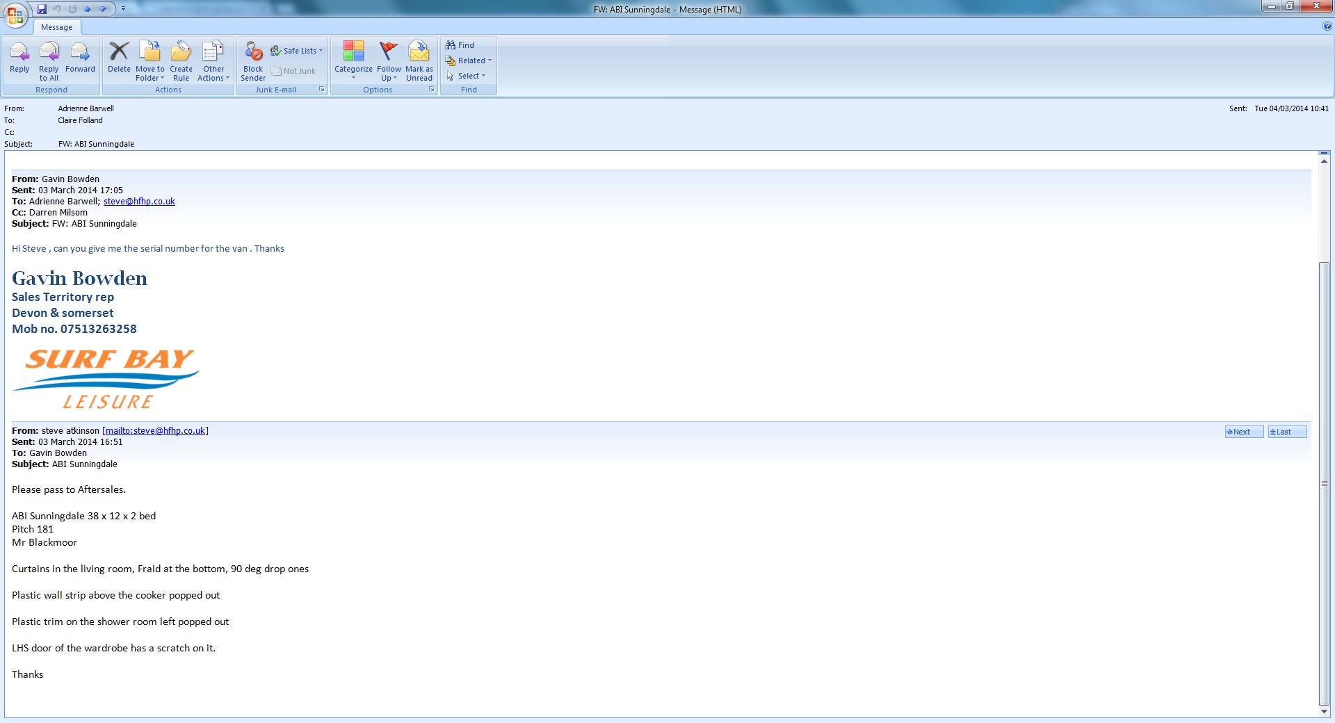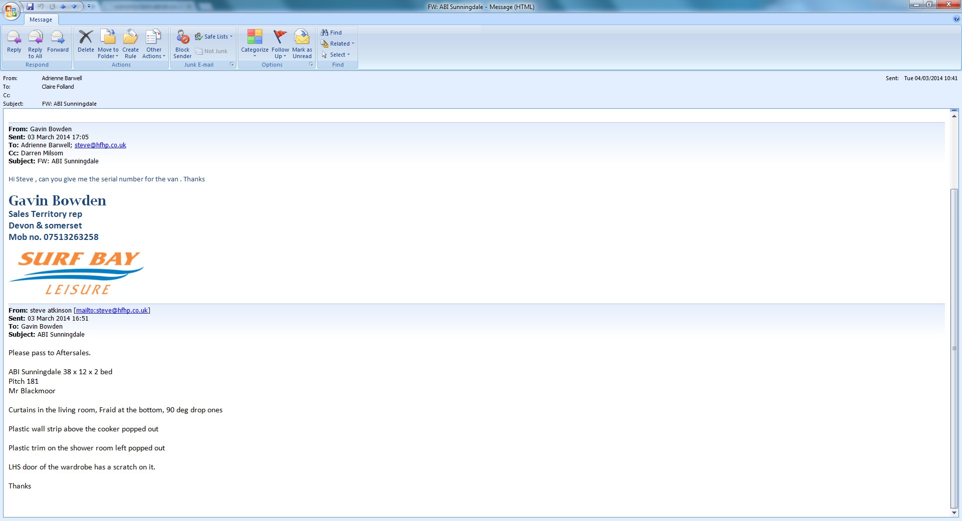 This has been rejected by ABI van was dispatched 29.9.13
