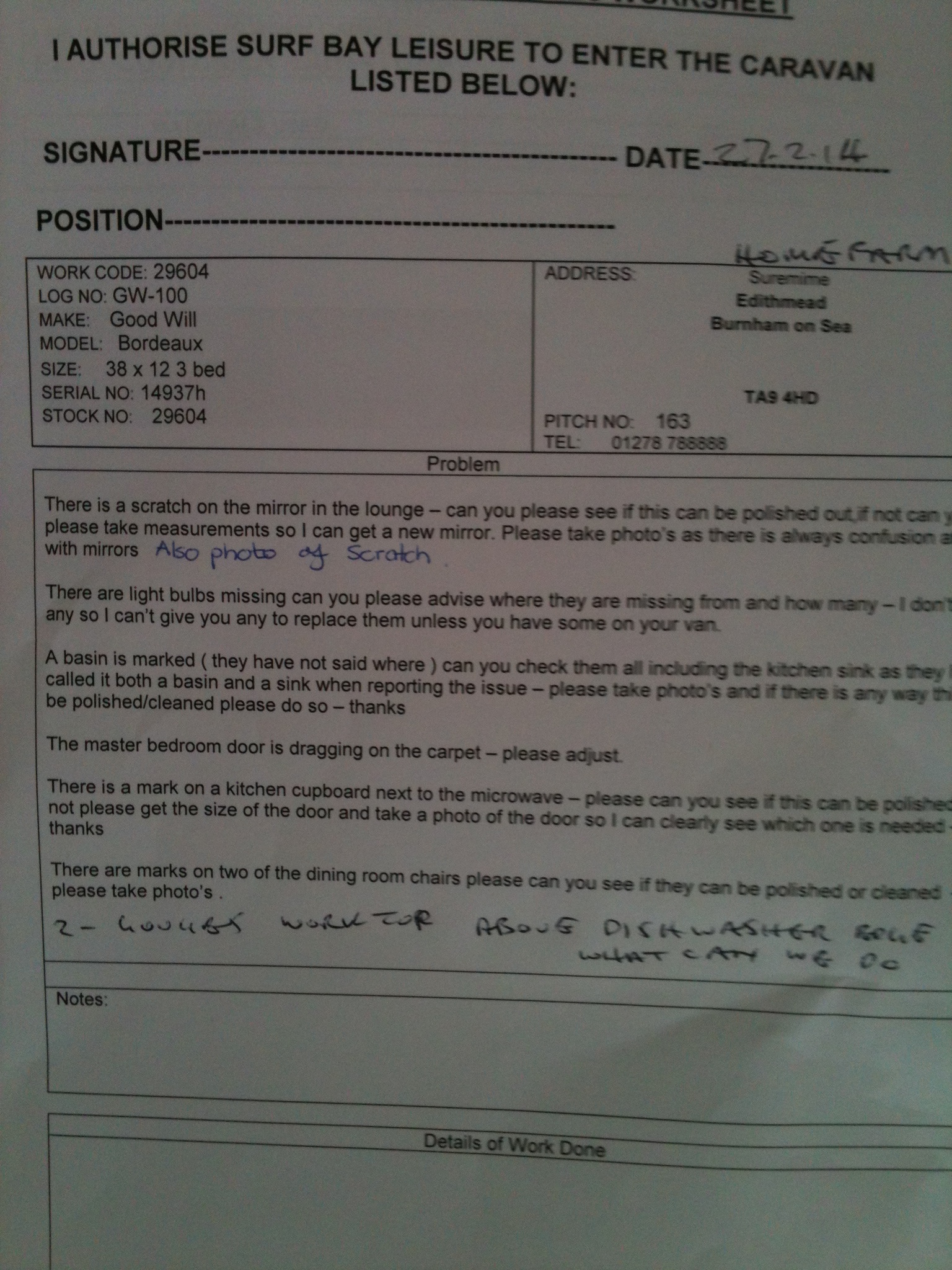 | Description | We will send an engineer to adjust | We will send an engineer to try to clean off in the first instance. |