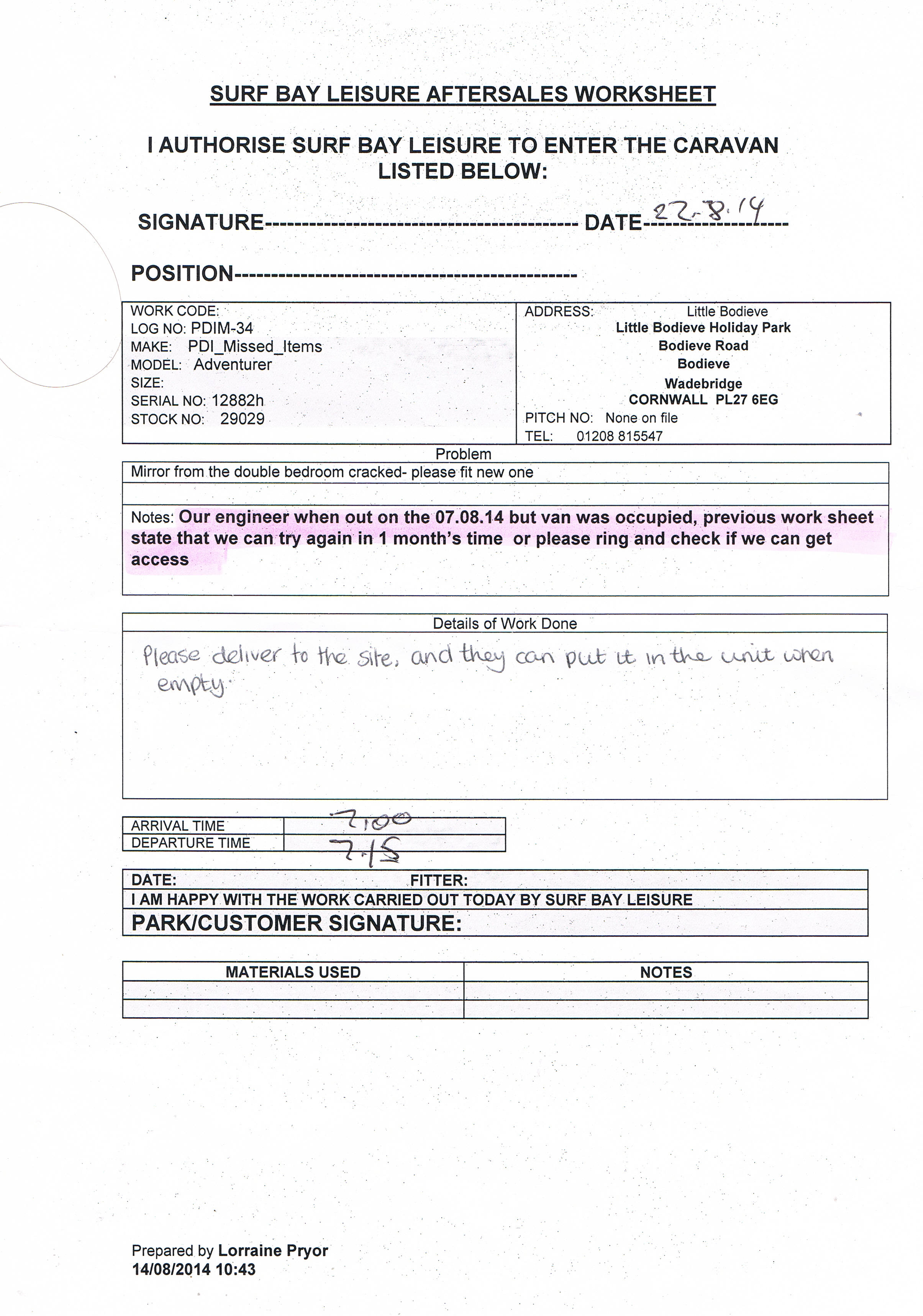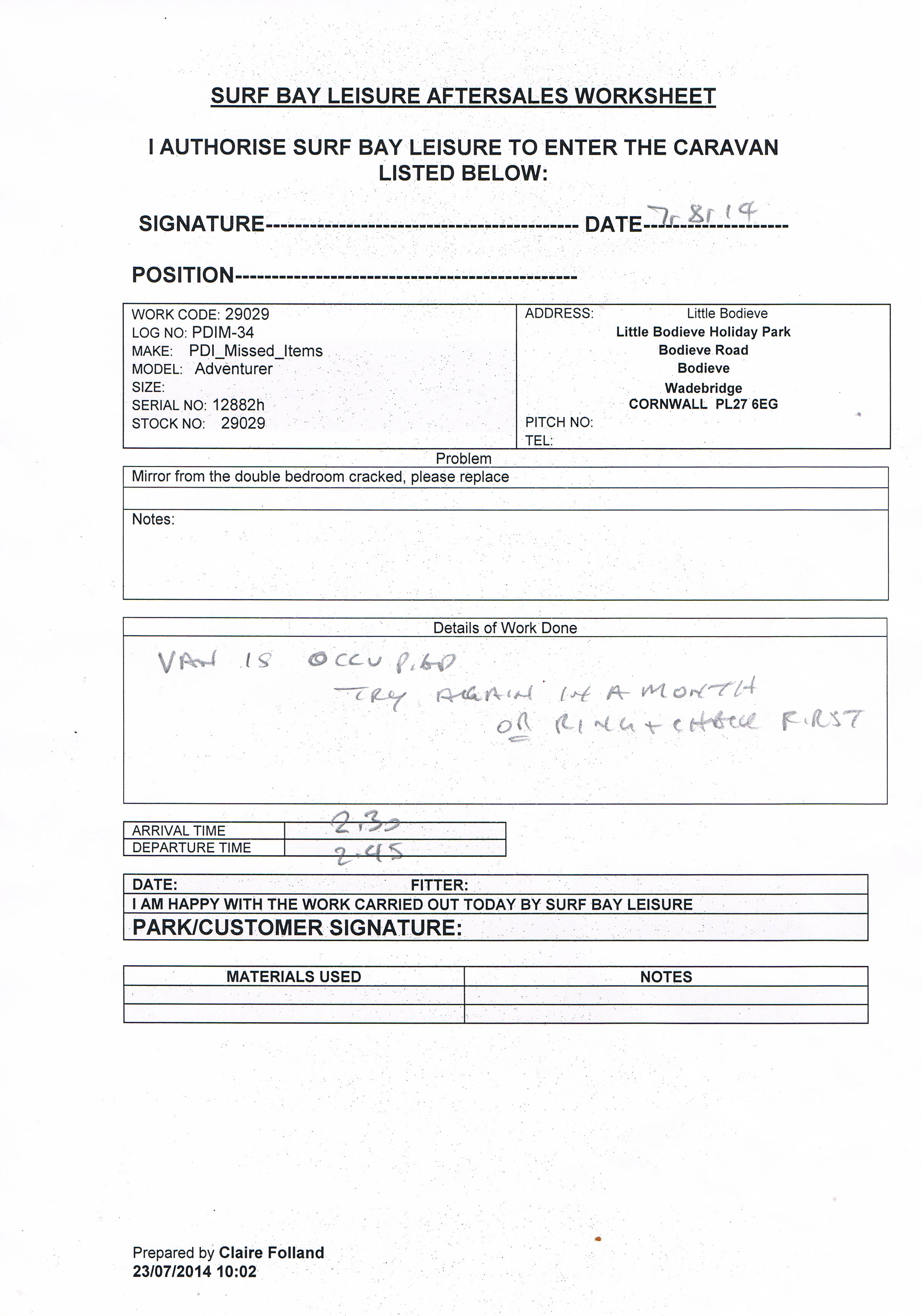 This van was delivered over a year ago but we will do this as a gesture of goodwill
