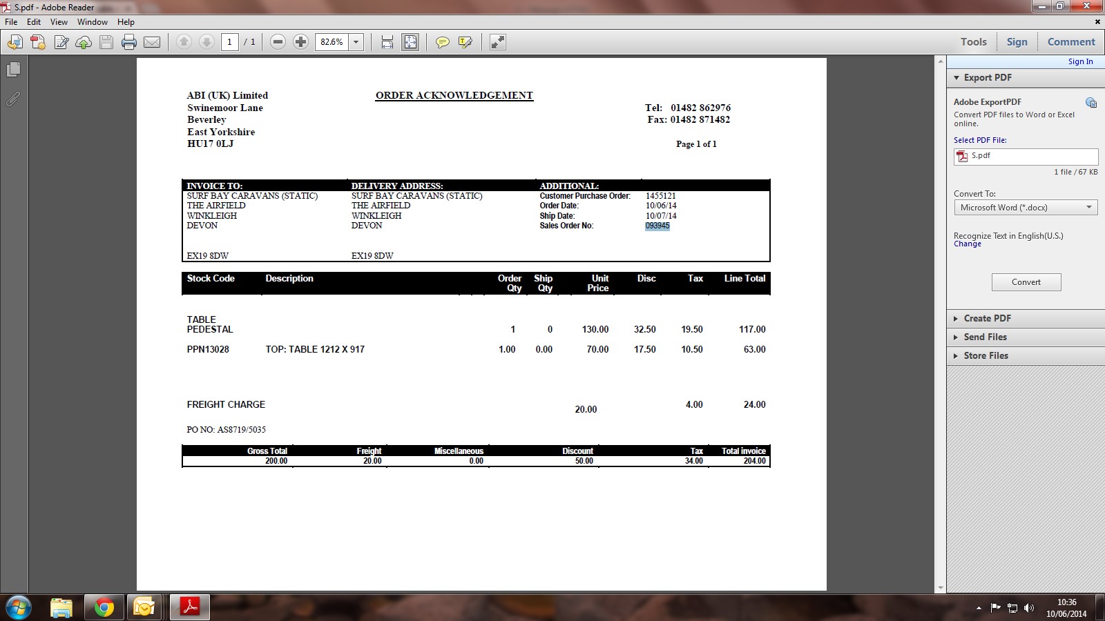 invoice received £150.00