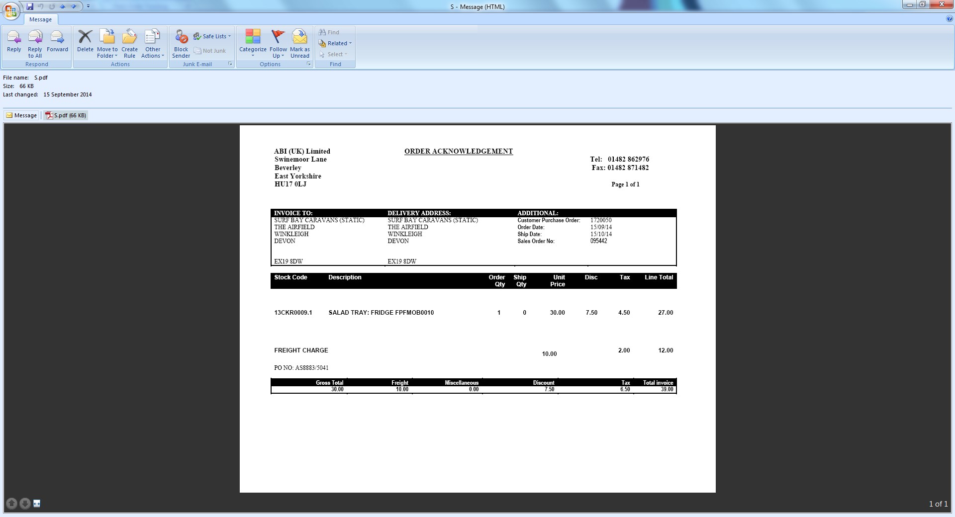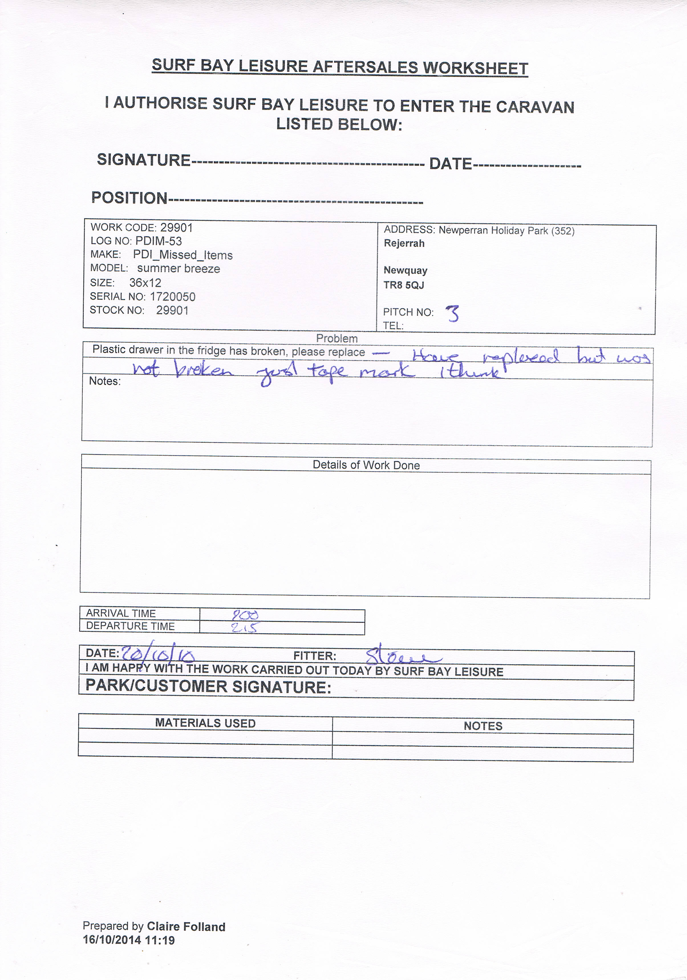 Claire Folland added a comment - replacement in stock, issued worksheet