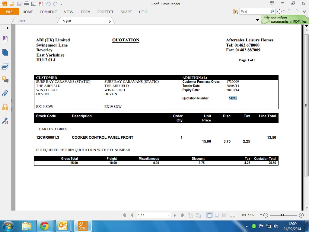 | Status | Awaiting Quote [ 10006 ] | Quotation supplied [ 10007 ] |
