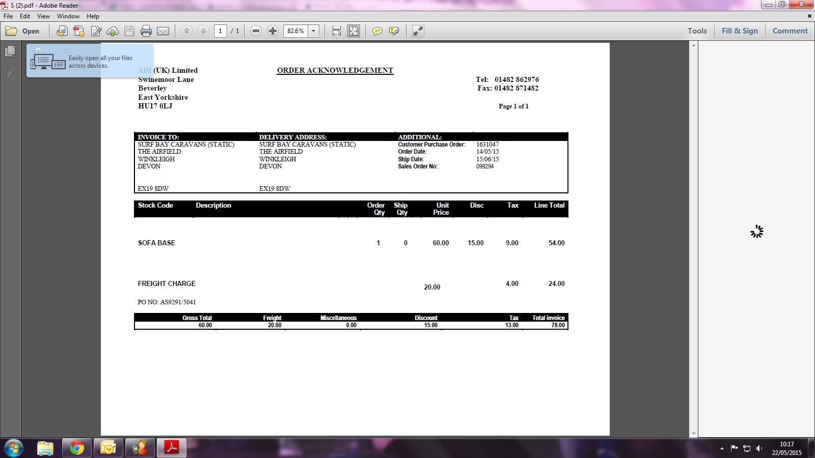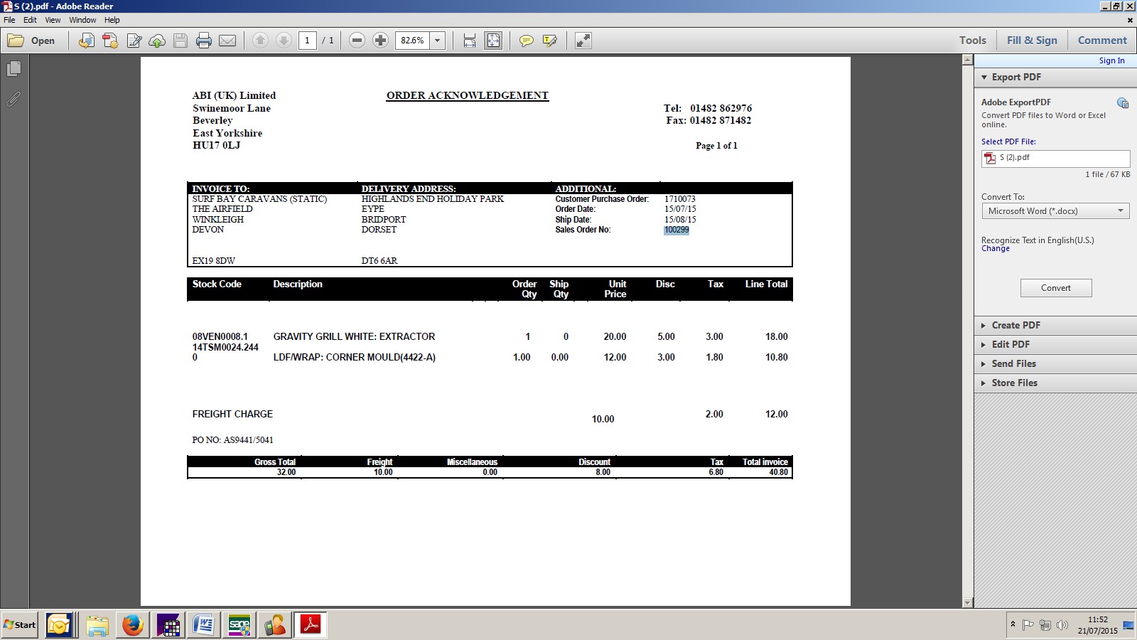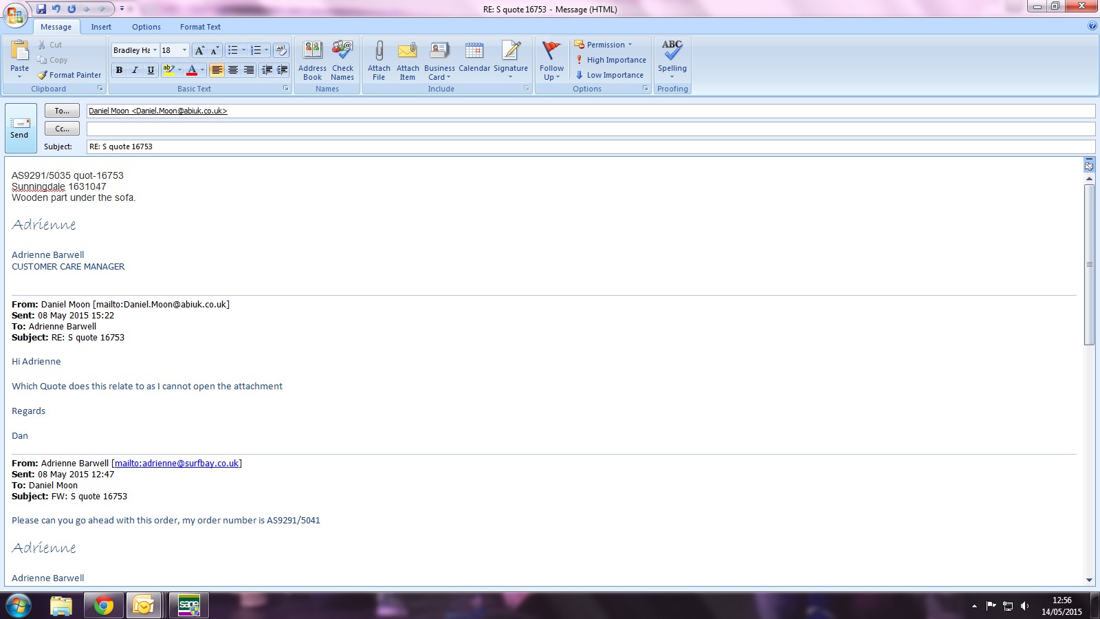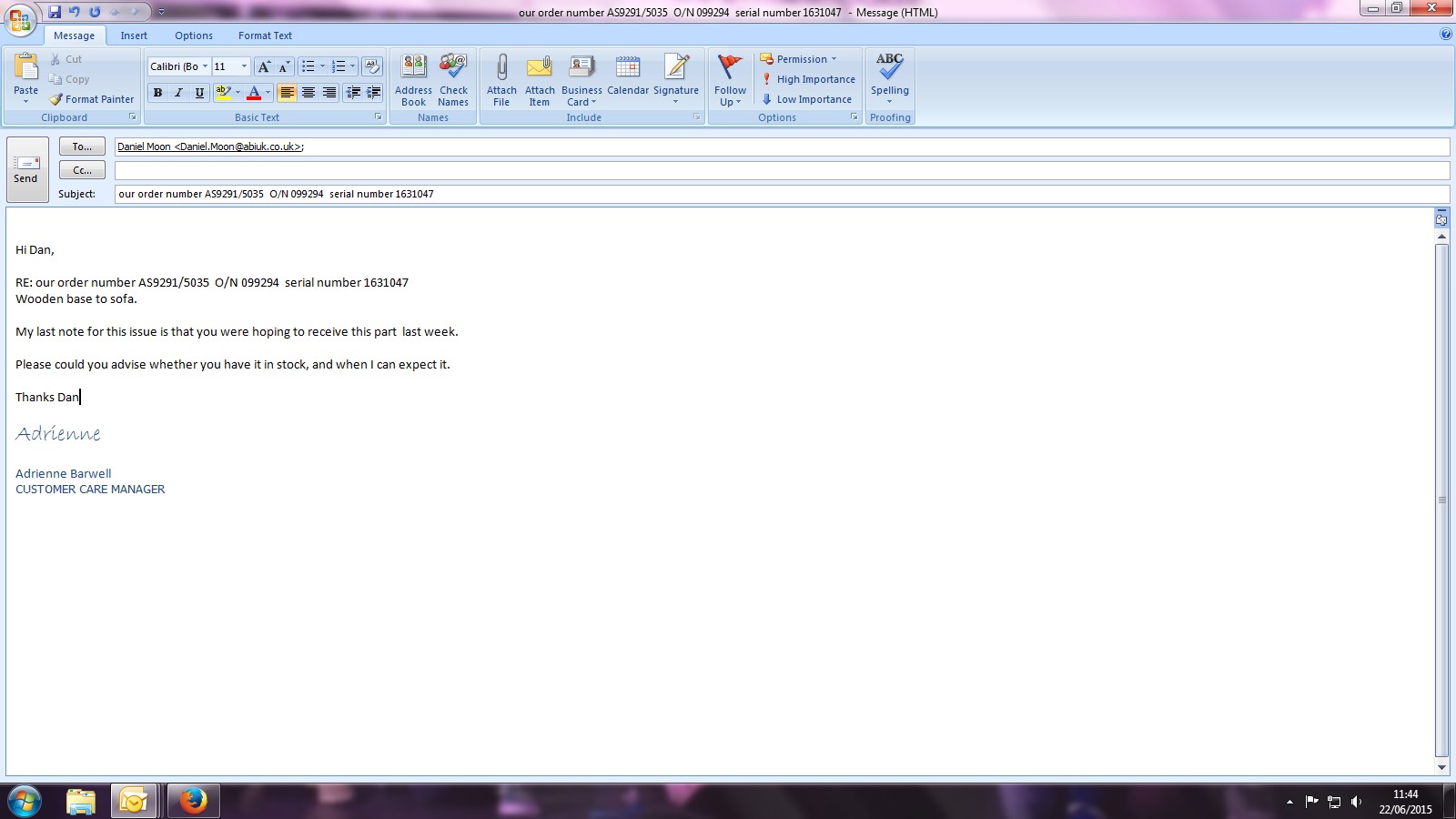 Order No:AS9291/5035 quot-16753 O/N 099294