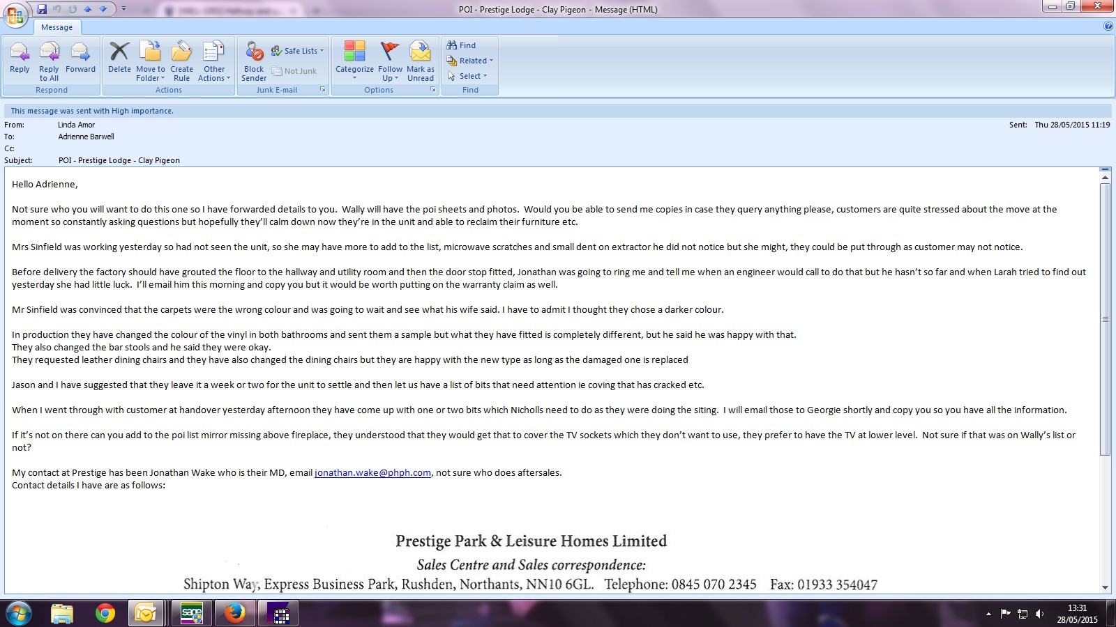 Adrienne Barwell (Inactive) added a comment - Linda Amor has advised: My contact at Prestige has been Jonathan Wake who is their MD, email jonathan.wake@phph.com , not sure who does aftersales.