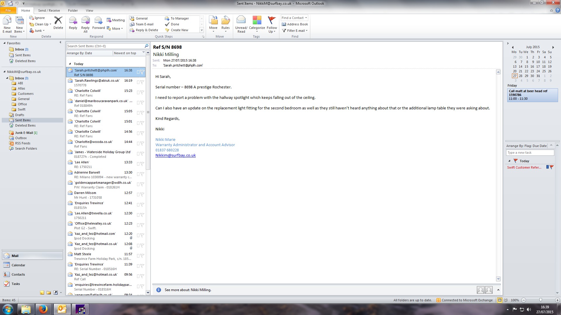 Nikki Milling (Inactive) added a comment - Revieved email from customer chasing so have emailed prestige asking for an update.