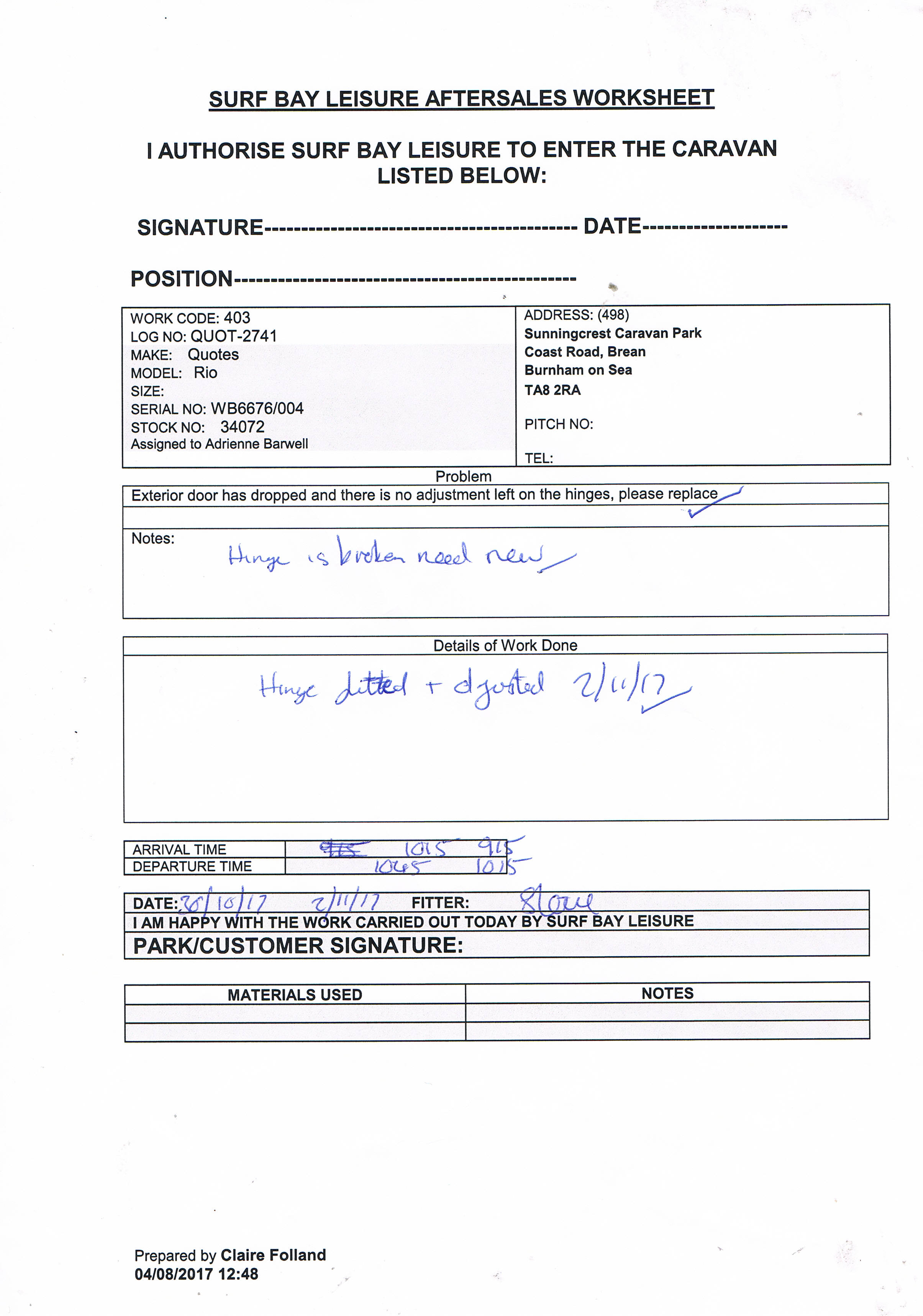 Lorraine Pryor (Inactive) added a comment - Im not sure why Izzy has emailed me ? I've had nothing to do with issue it was Ade/ Claire looking into this it should of been loaded on a pre-owed - 731 as per the worksheet it was never a quote . their is not quotes attached to jira ? I will change this to pre owned and then close this issue off.
