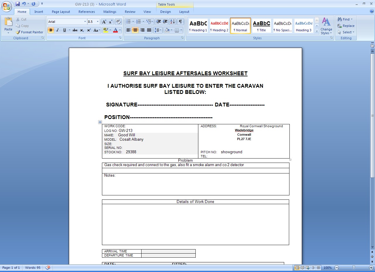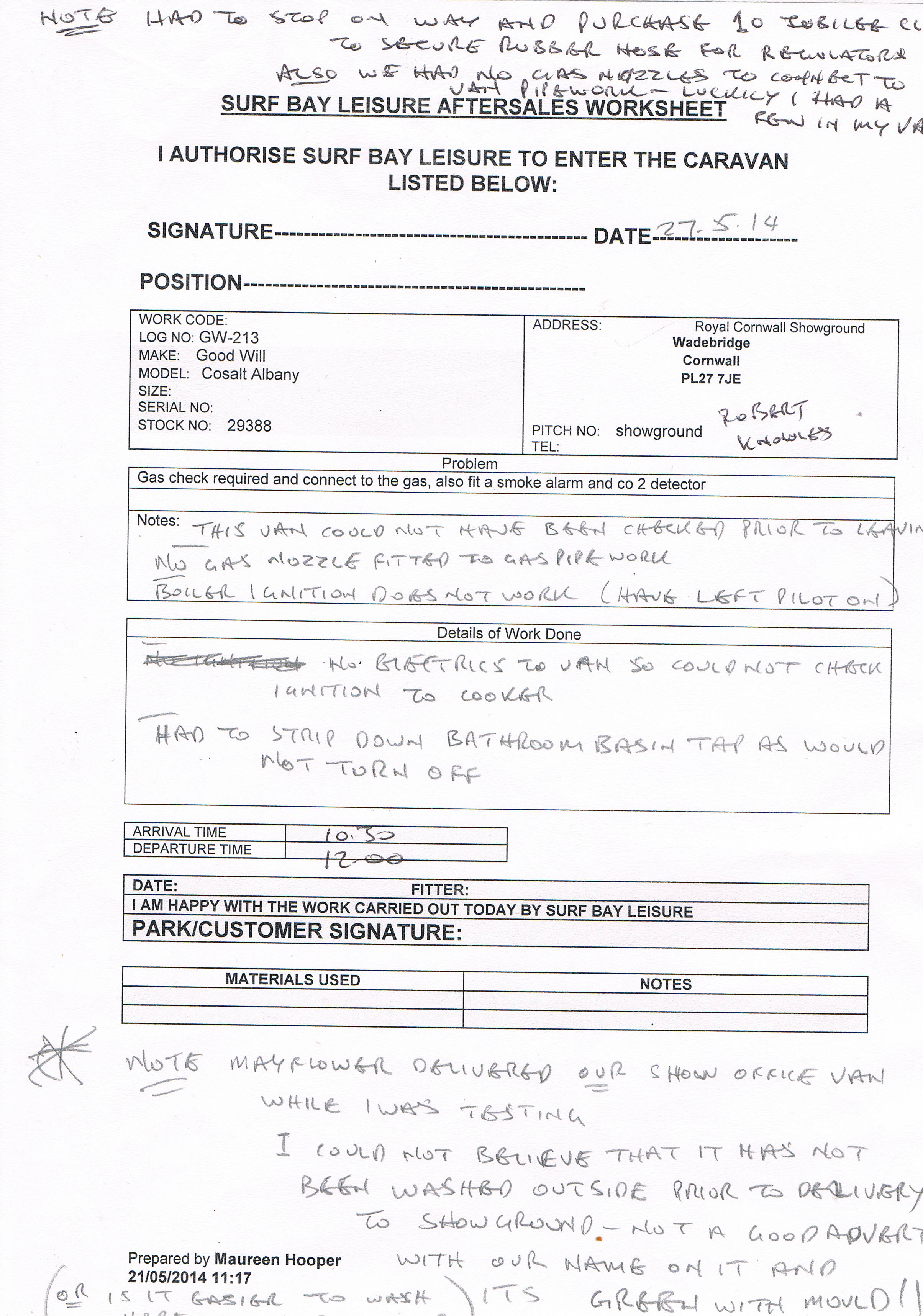 Adrienne Barwell (Inactive) added a comment - Keith advises that this van could not have been checked prior to leaving, no gas nozzle fitted to the gas pipework Boiler ignition does not work (he has left the pilot on) No electrics to the van so could not check ignition to the cooker Keith had to strip down bathroom basin tap as it would not turn off