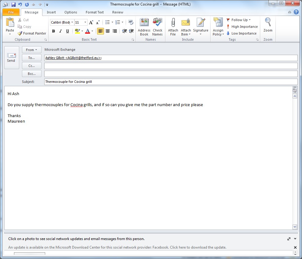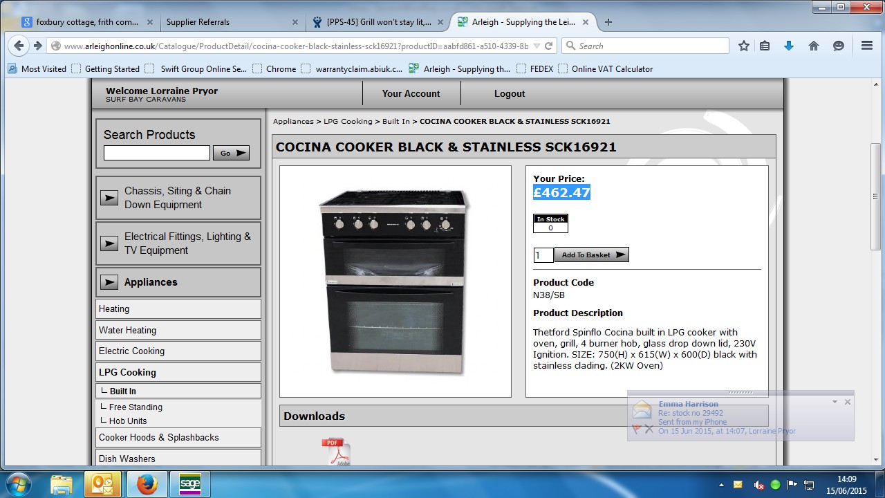 I have received an invoice from Arleigh for the cooker, I have not been told that its come in.