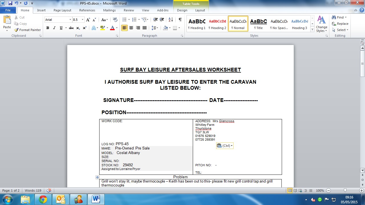 I have called the home no no reply just rings, called the mobile no and left a message asking Mrs Glencross if we could come on Friday and if she can call me back to confirm.