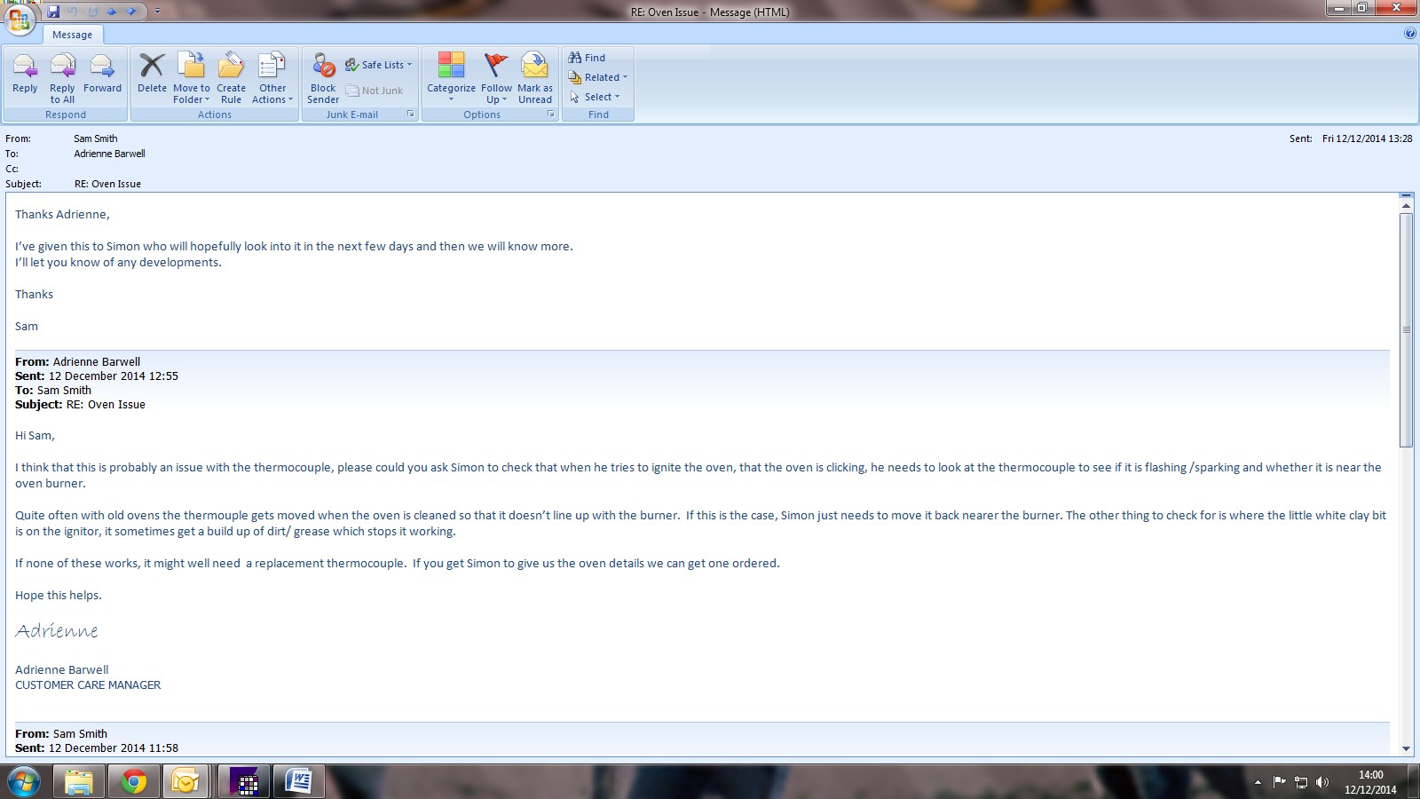 If none of these works, it might well need a replacement thermocouple. If you get Simon to give us the oven details we can get one ordered.