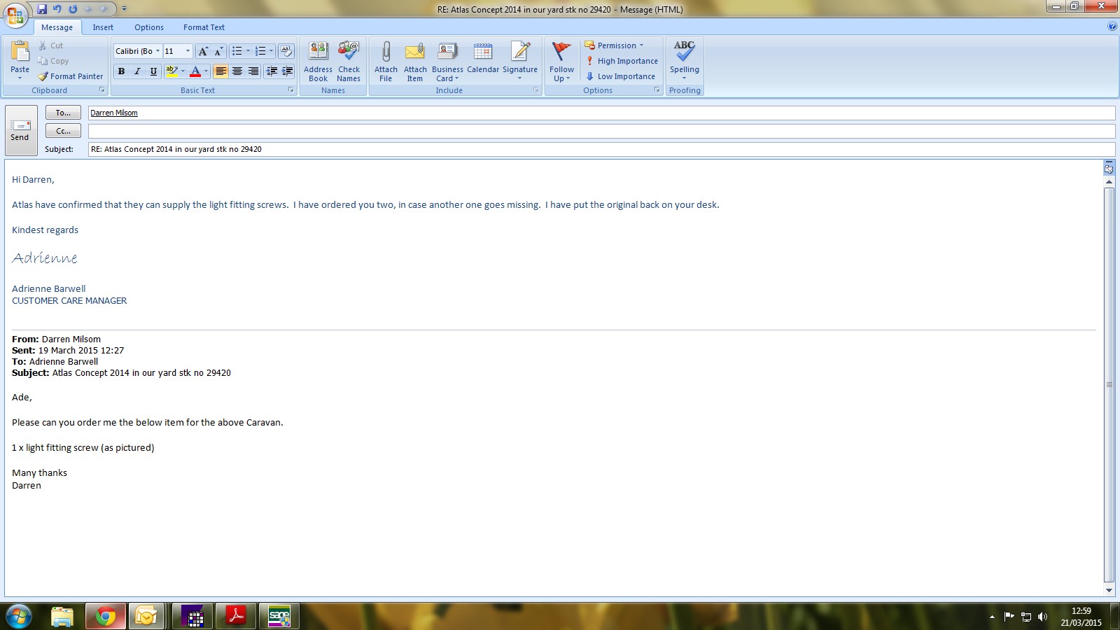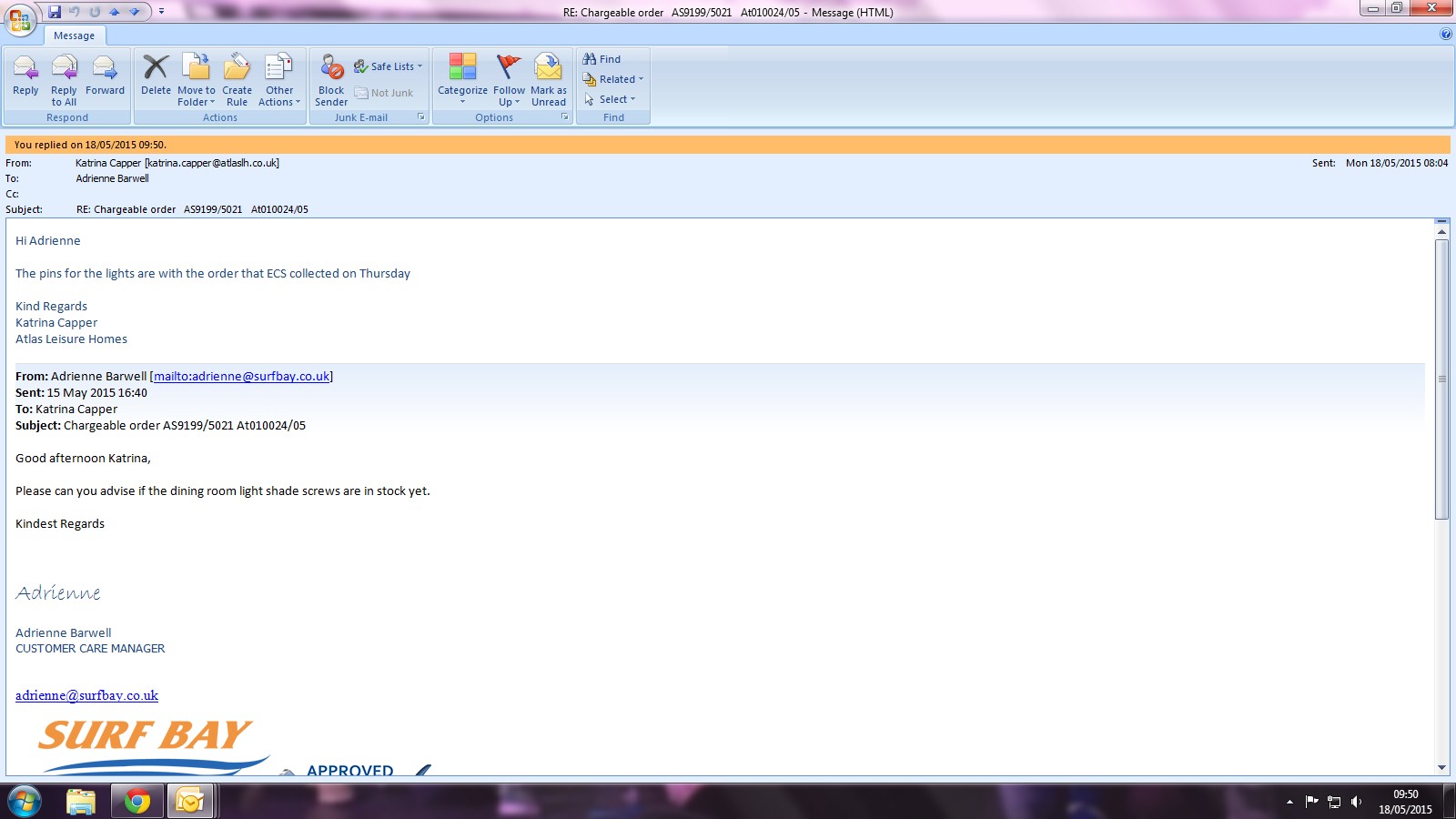 Details send through to Katrina, asking if she can supply this part. Awaiting response