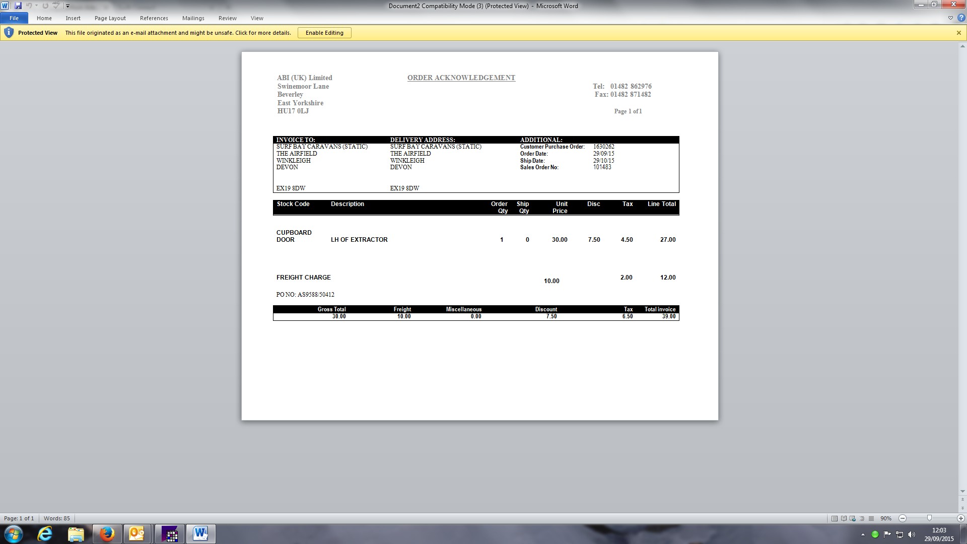 | Attachment | Order confirmation .jpg [ 102379 ] |
