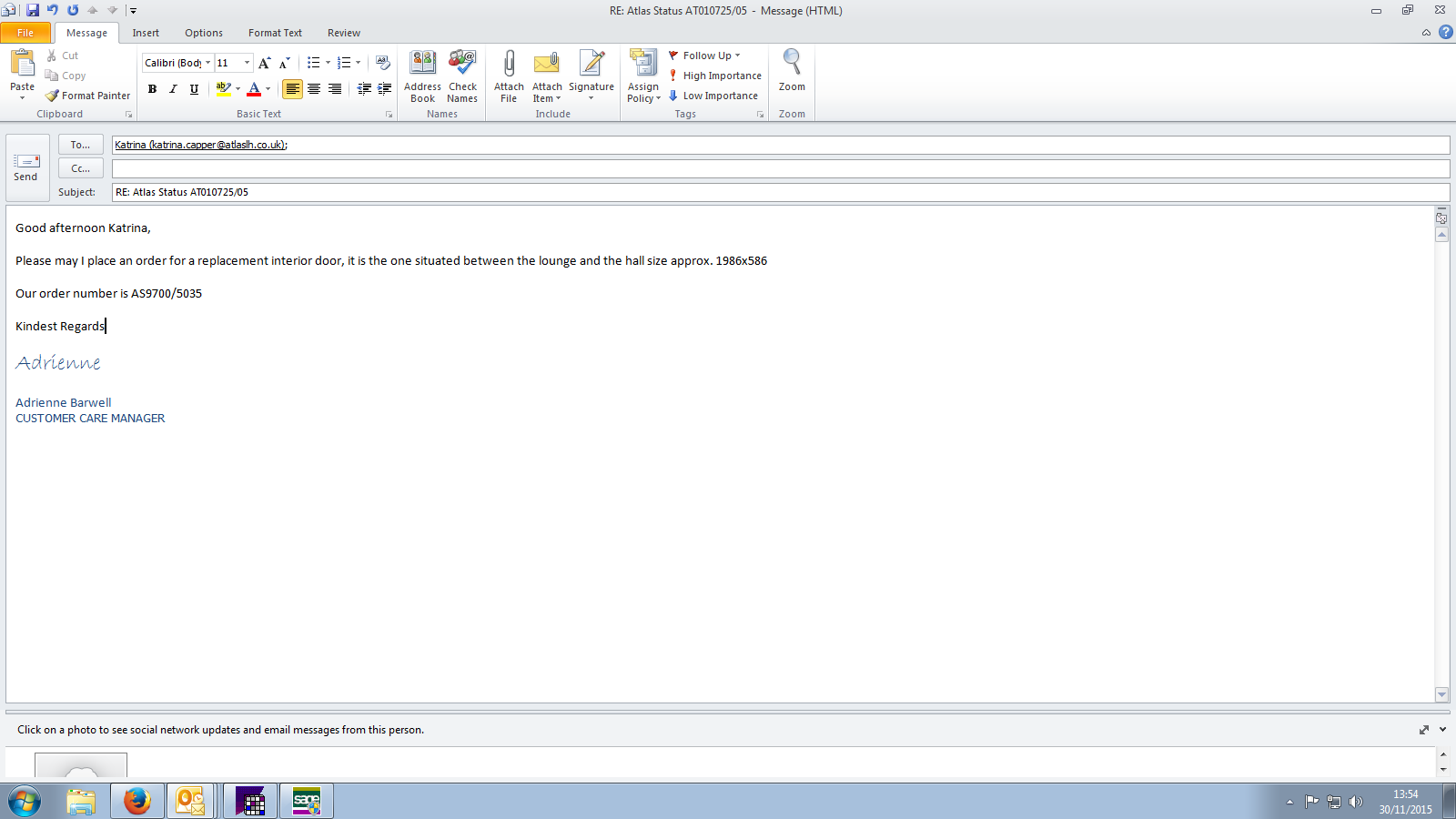 Steve K will find out the serial number of the holiday home and update me, so that I can proceed with the order.