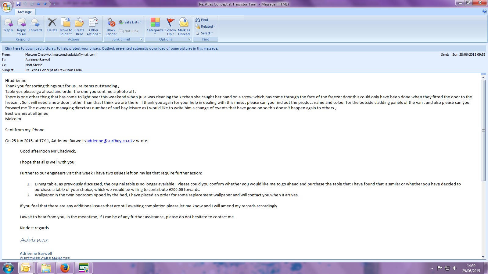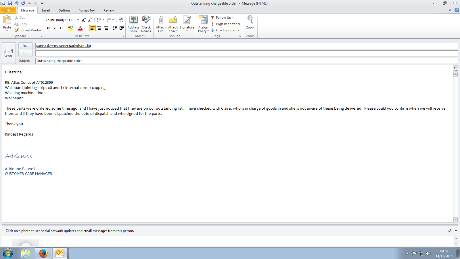 Order e-mailed over to Katrina at Atlas