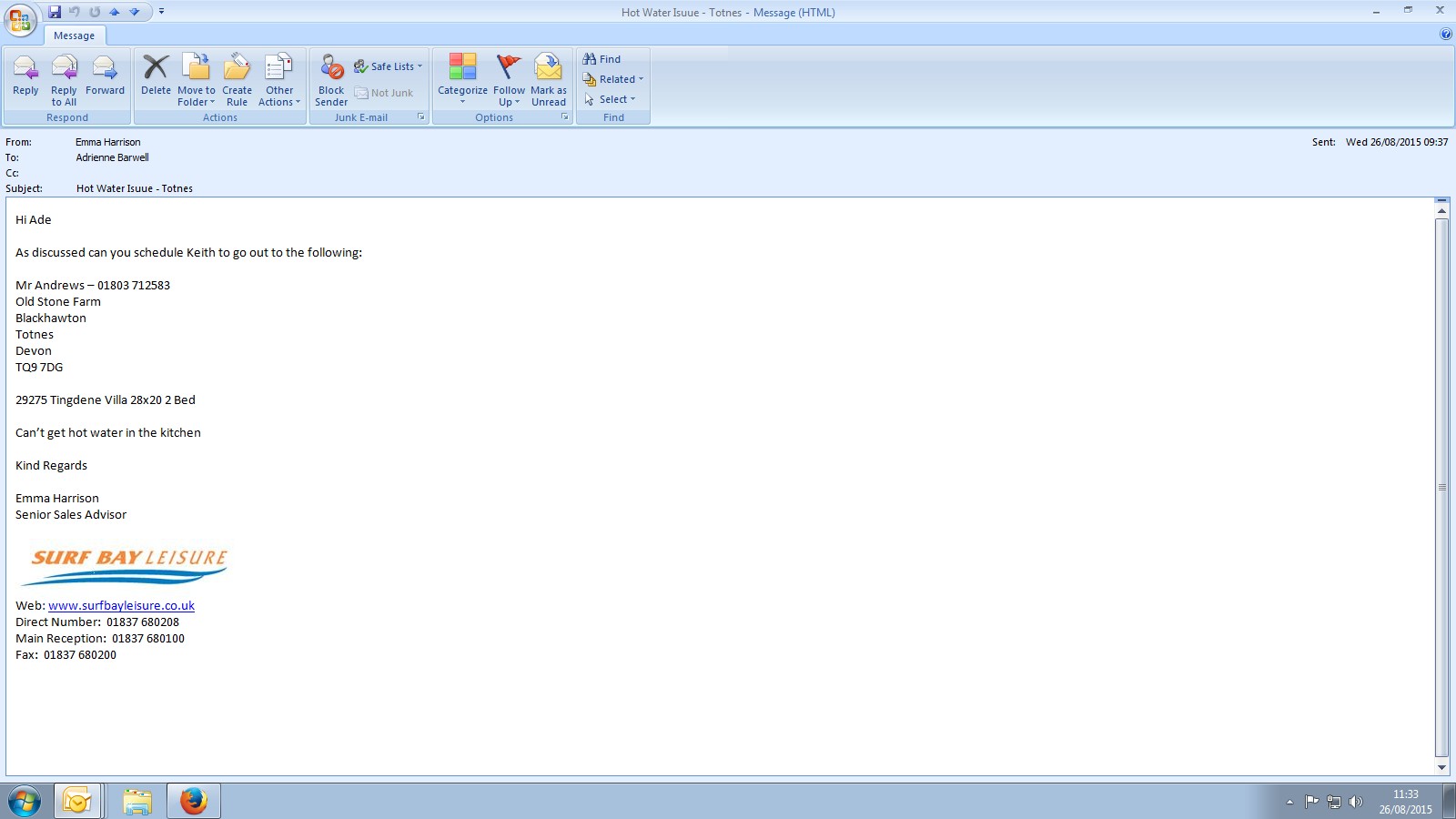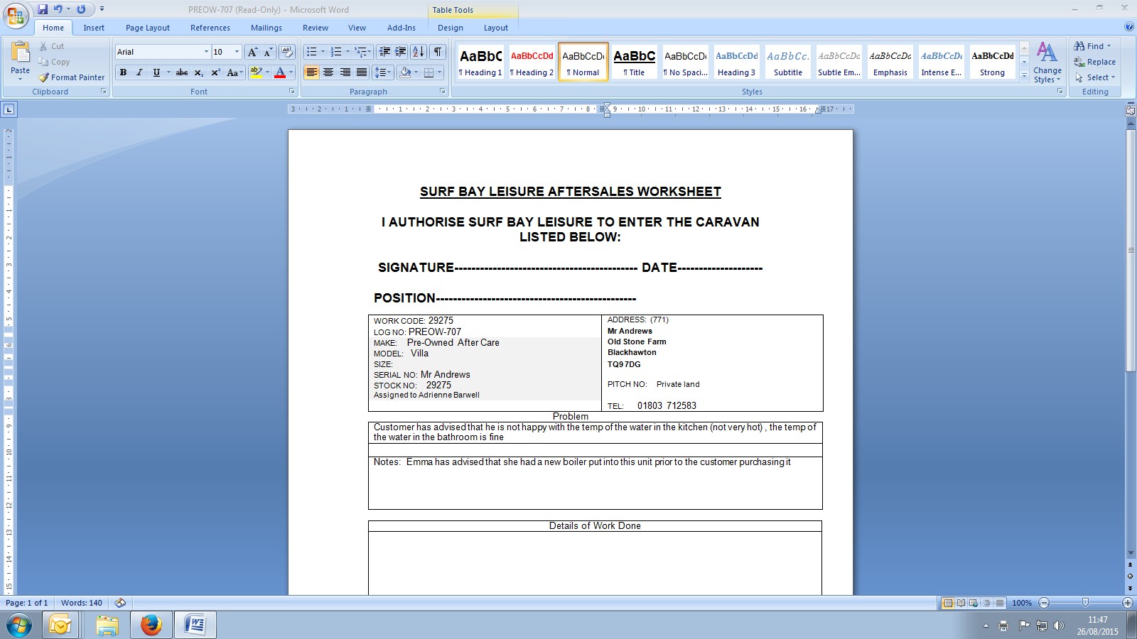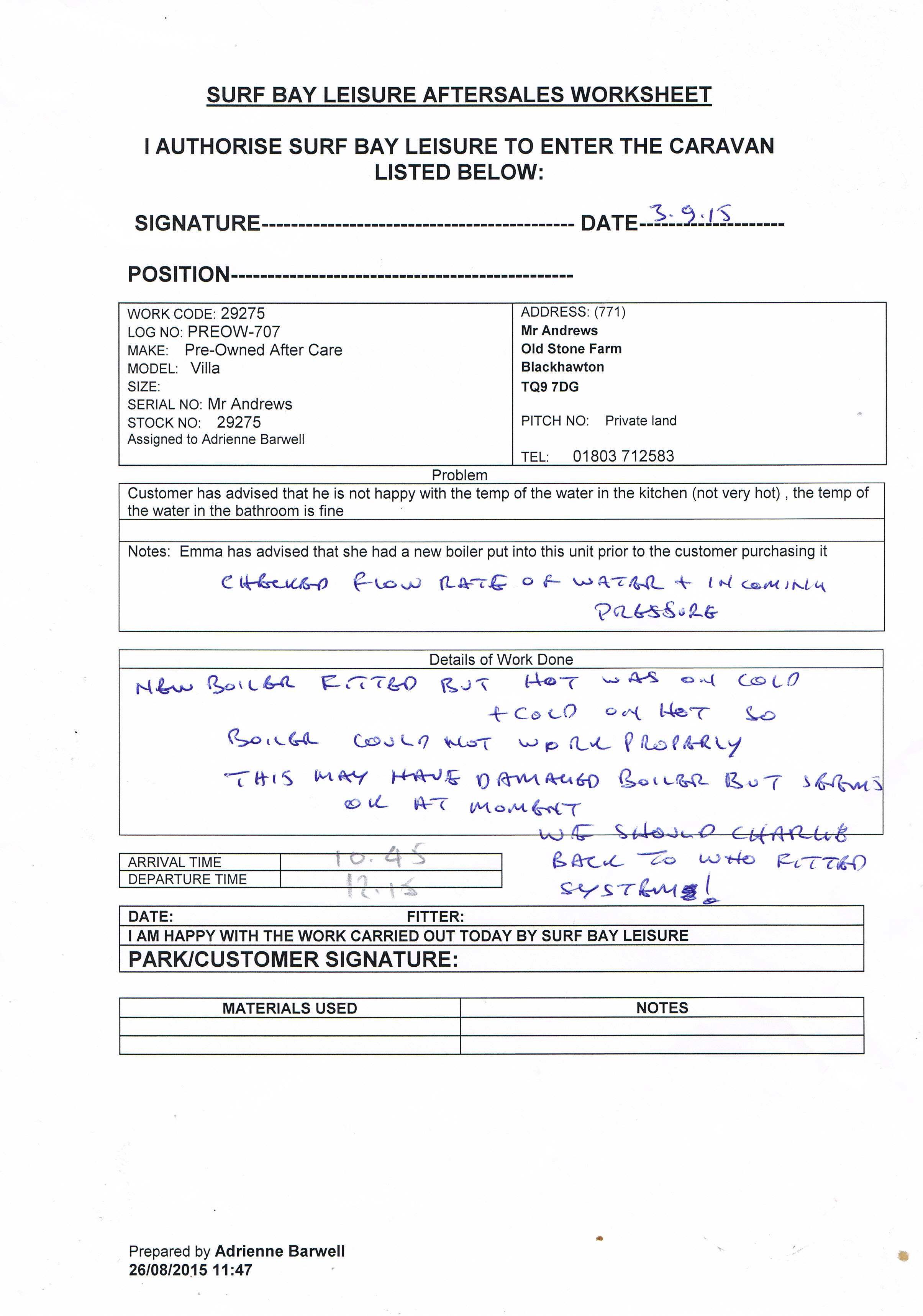 Karen Watson (Inactive) added a comment - Called Mr Andrews to be sure all OK for Keith's visit on Thursday 03.09.15 - he confirmed yes all OK, anytime.