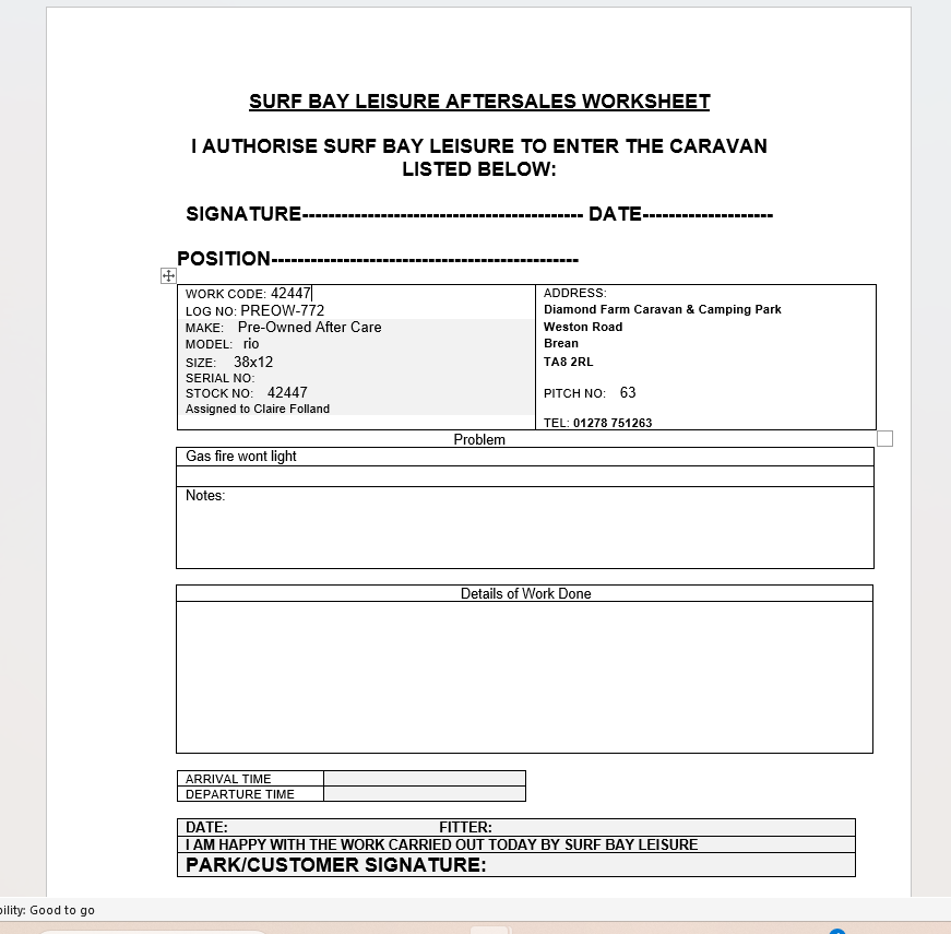 | Summary | CLONE - Main door adjust, sticking on bottom | Gas fire wont light |